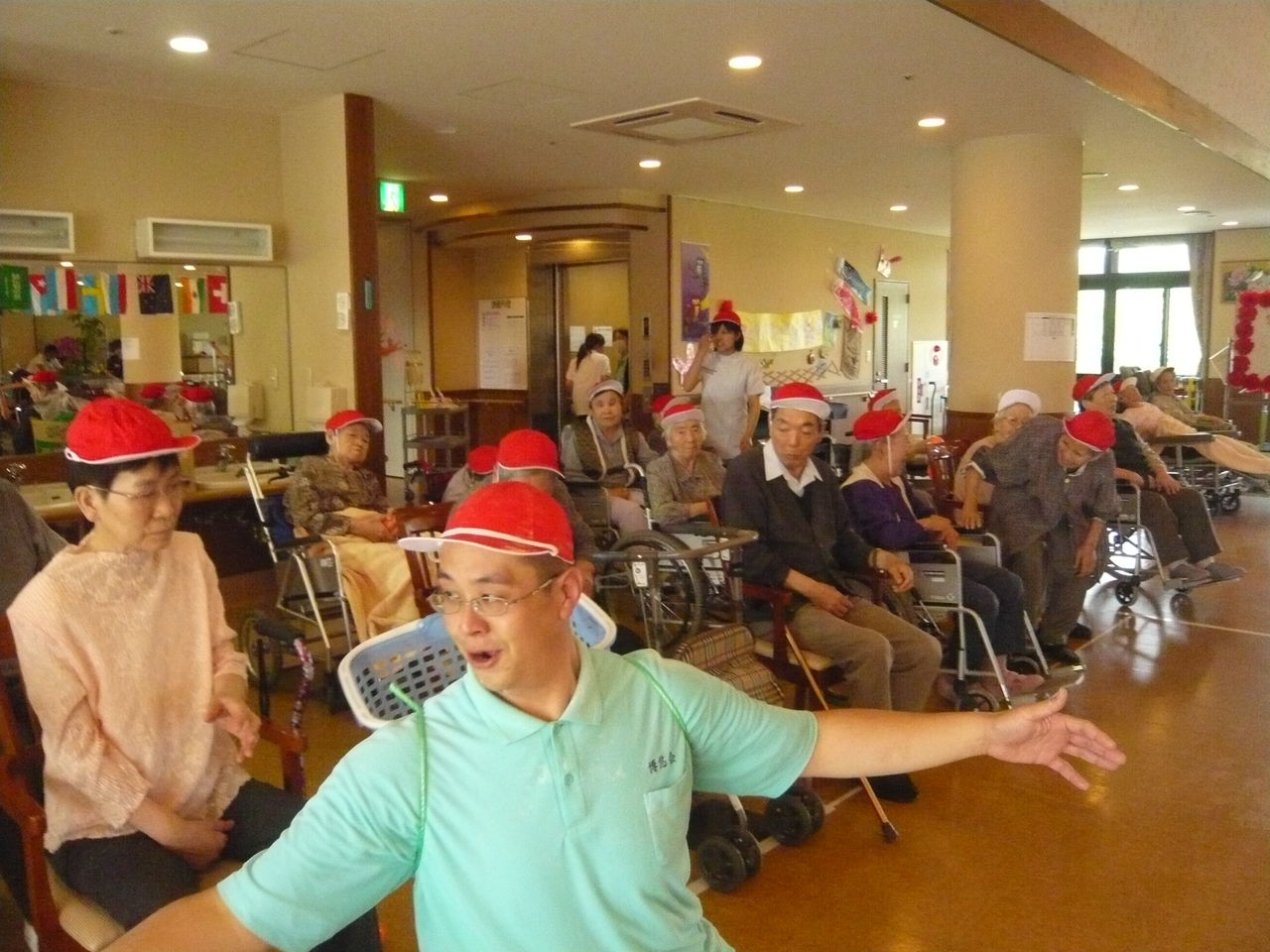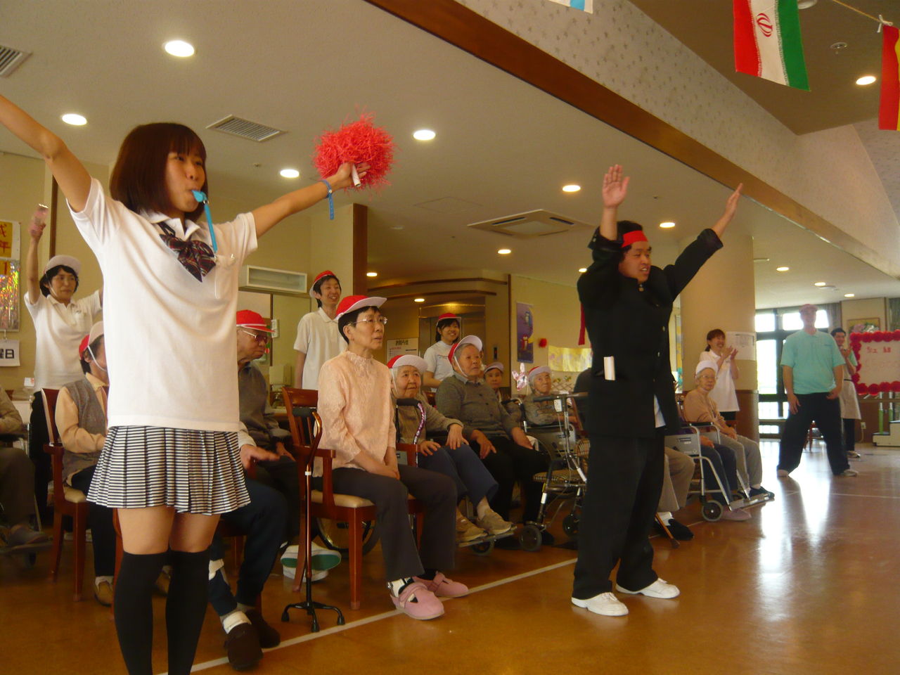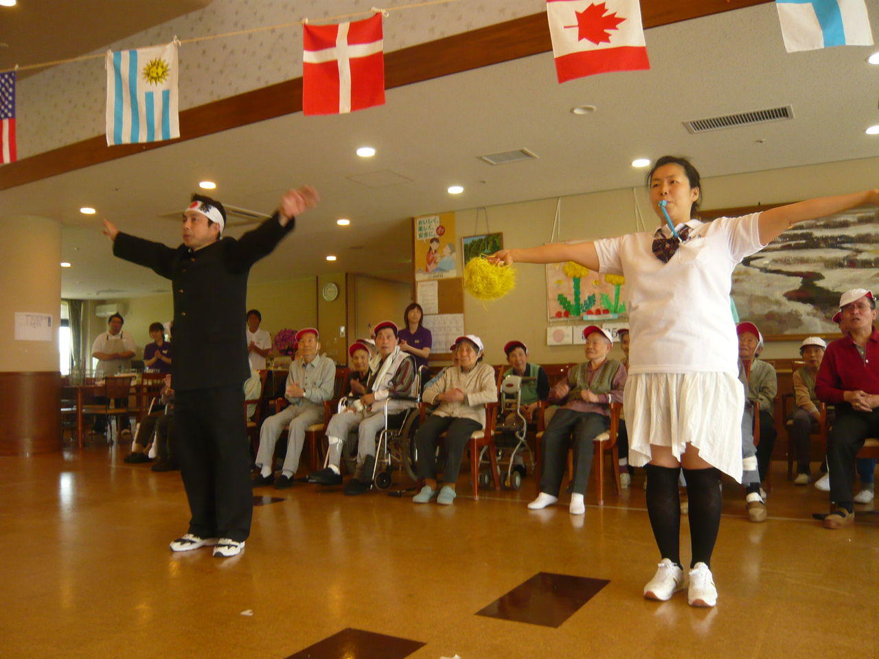 休憩中ただ待って頂くのも退屈なので、有志職員の応援合戦が行なわれました