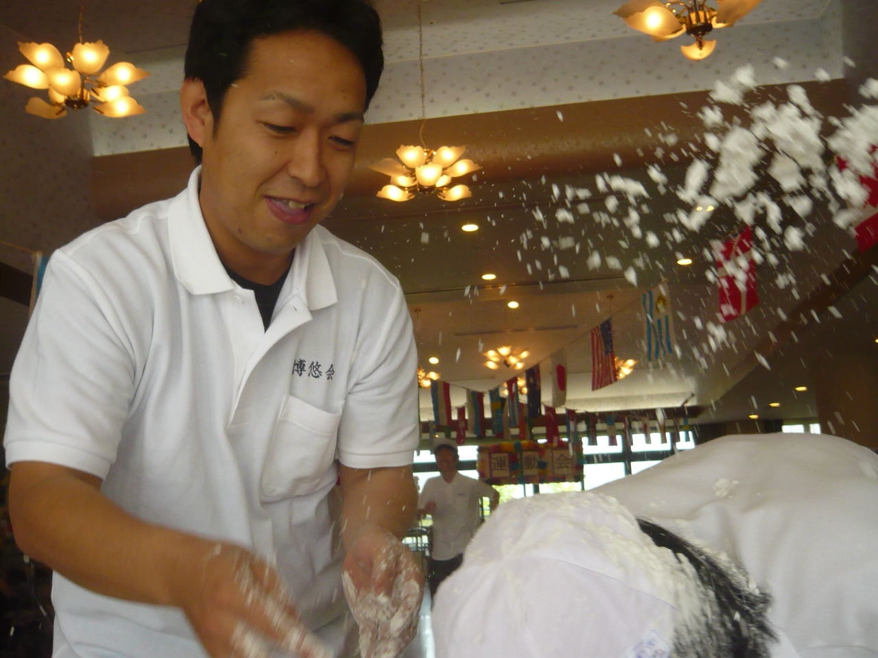 ←職員競技の”粉屋のねずみ”で好き放題する施設長。この後、粉の掃除大変だったんですからね