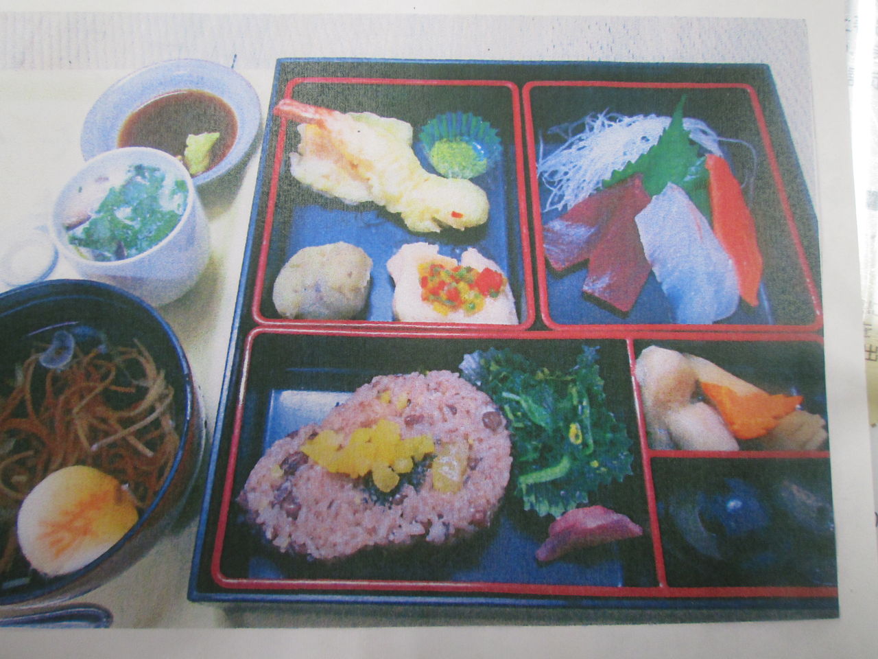 メニュー)栗赤飯/信州そば/刺身盛り合わせ/天ぷら/菊花和え/