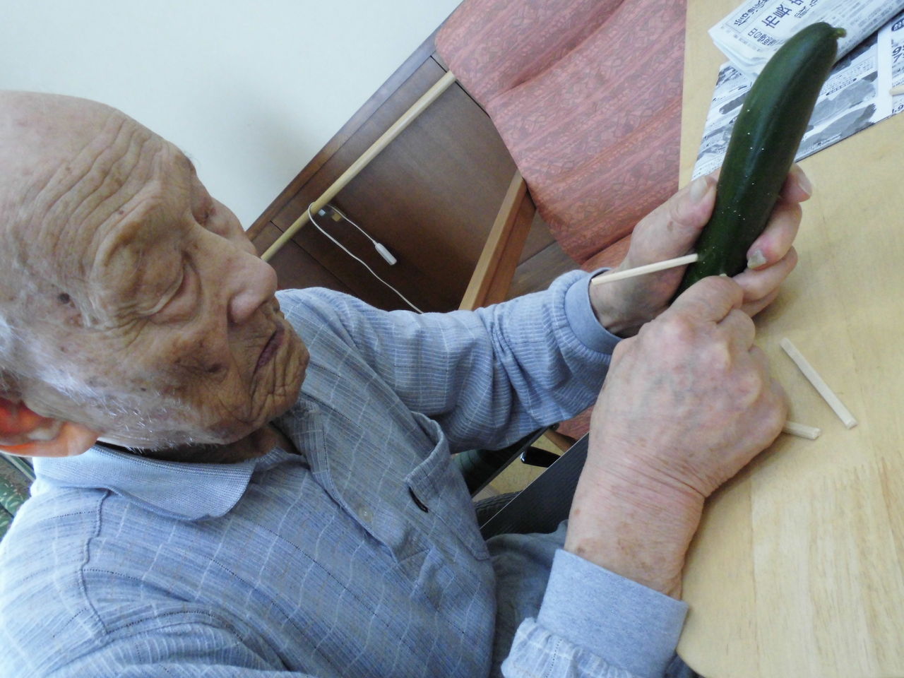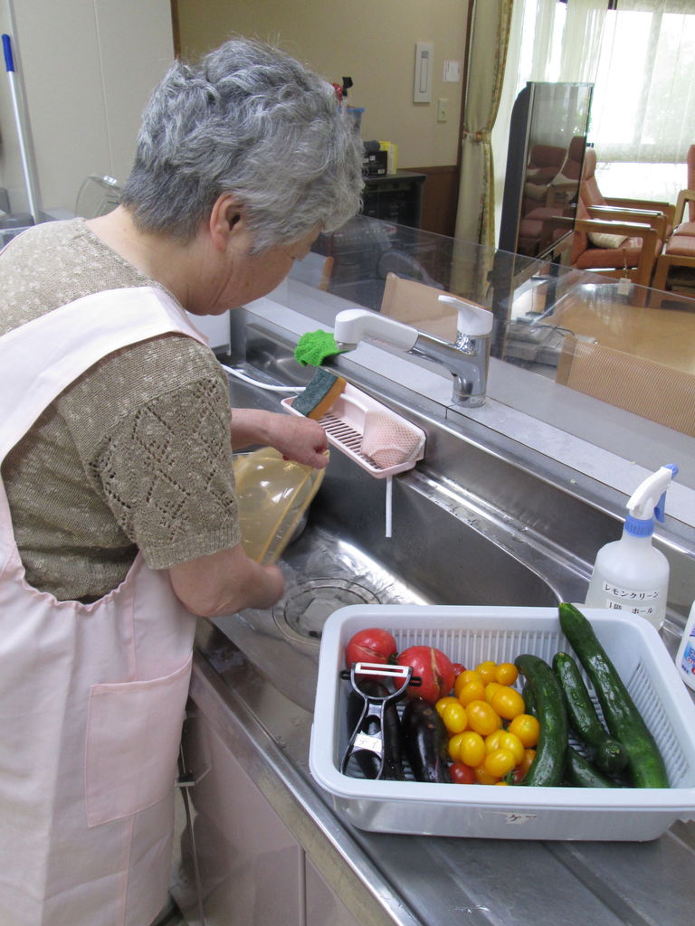 浅漬け担当の御利用者様には、施設で育てた、採れたて野菜を綺麗に洗い、