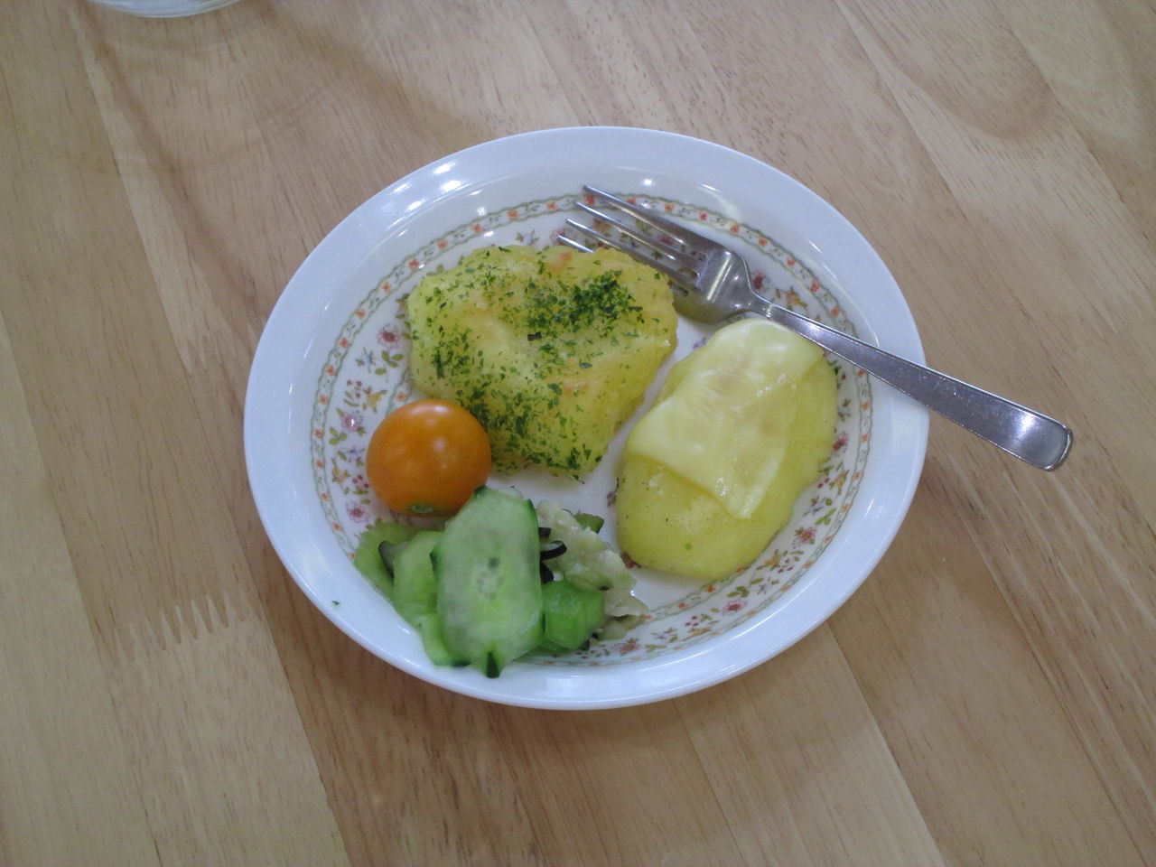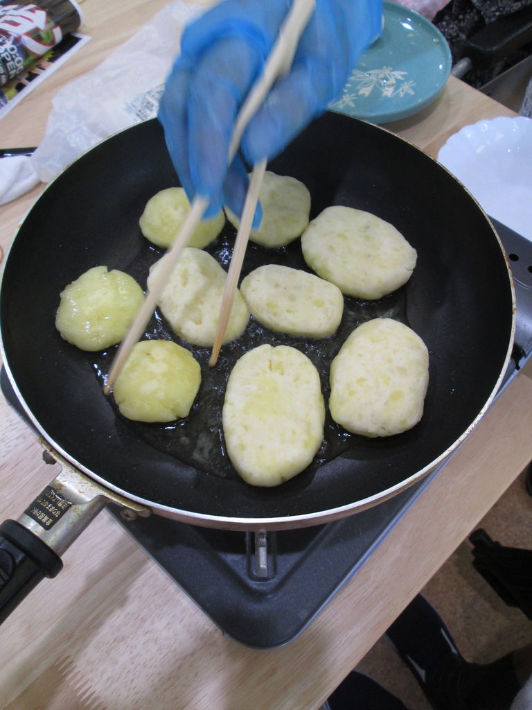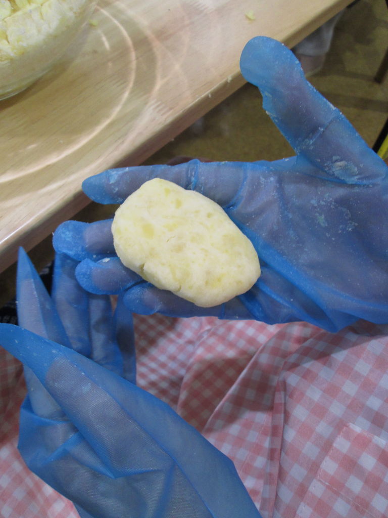 芋もち担当の御利用者様には、千曲市産のじゃがいもをゆでたあと、皮をむいて、つぶし、