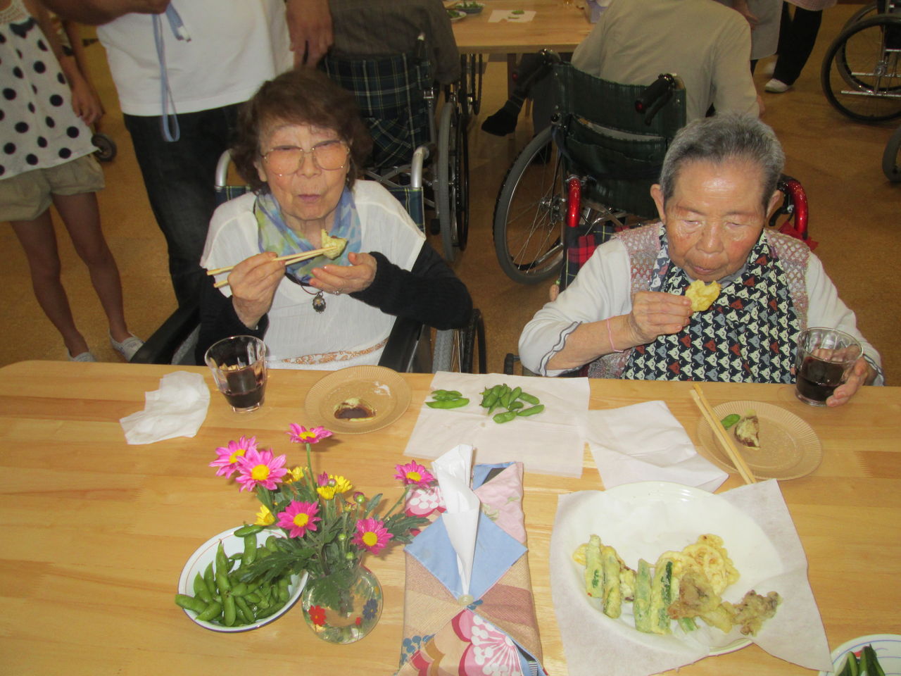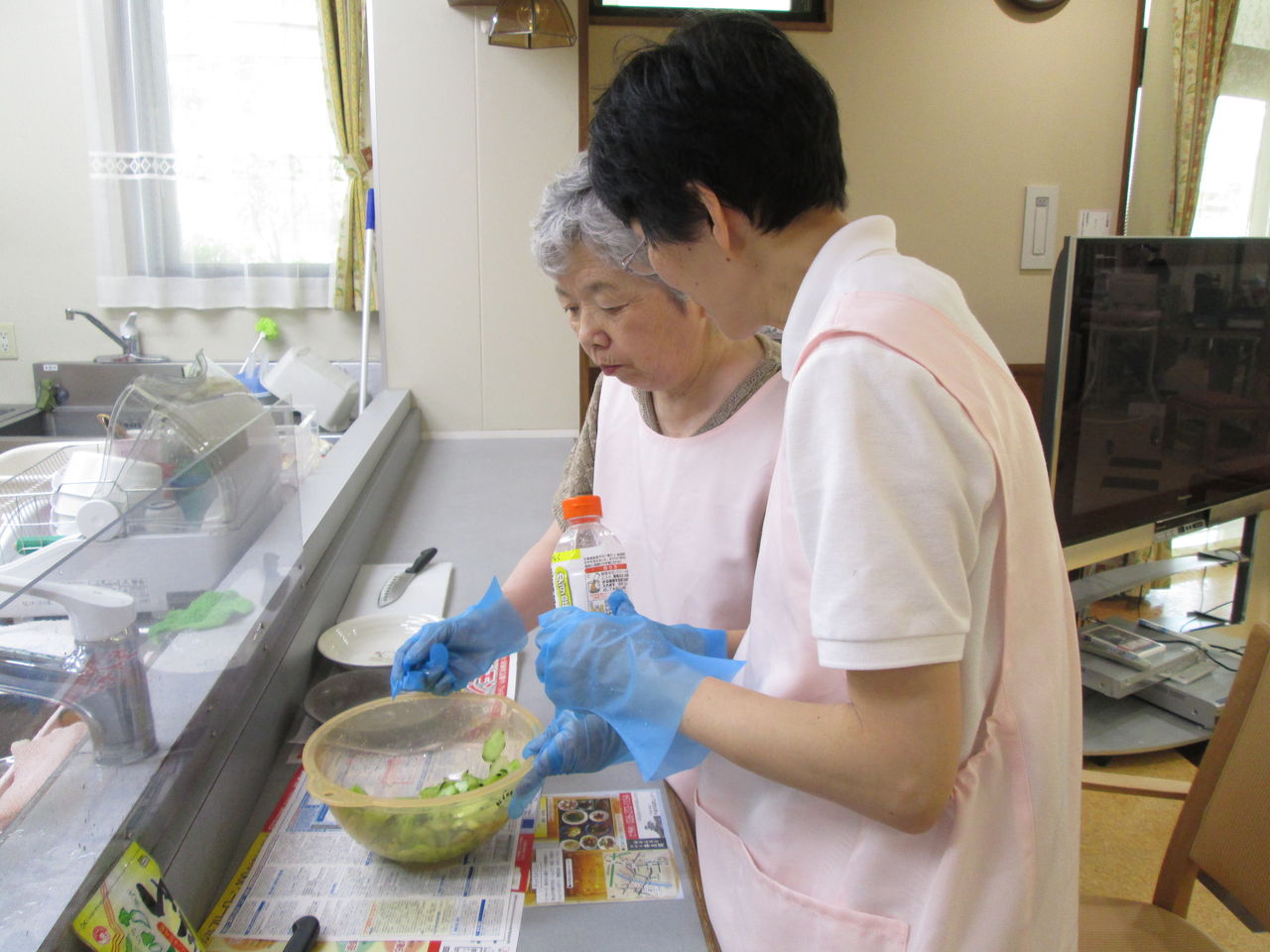 調理を楽しまれた後、御利用者様は「芋もちも浅漬けも美味しいわぁ」と