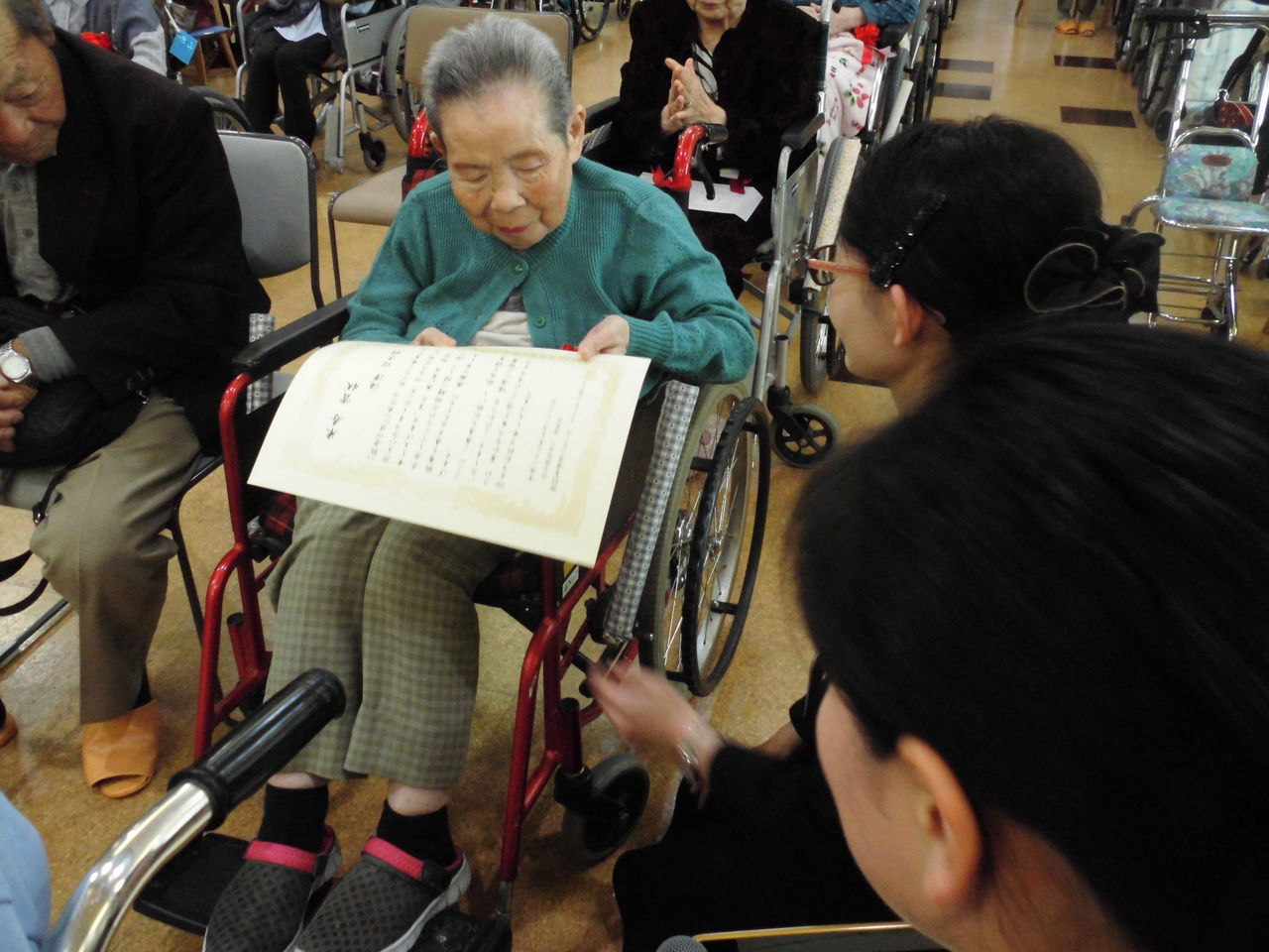 歳祝いの方々に賞状とお祝いの品を差し上げました。