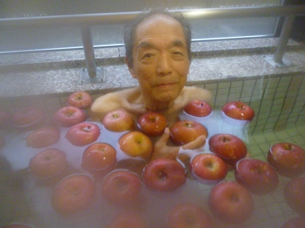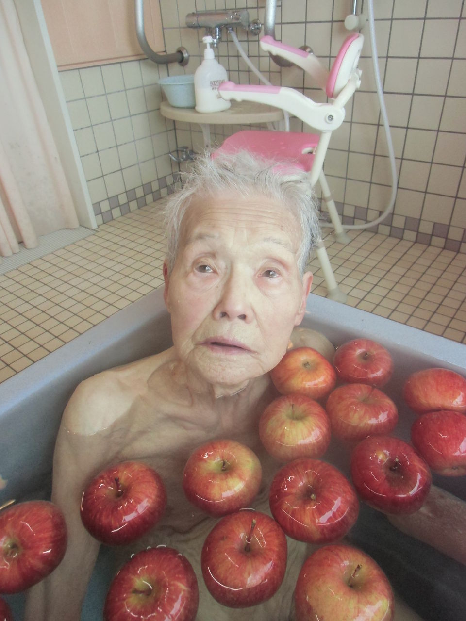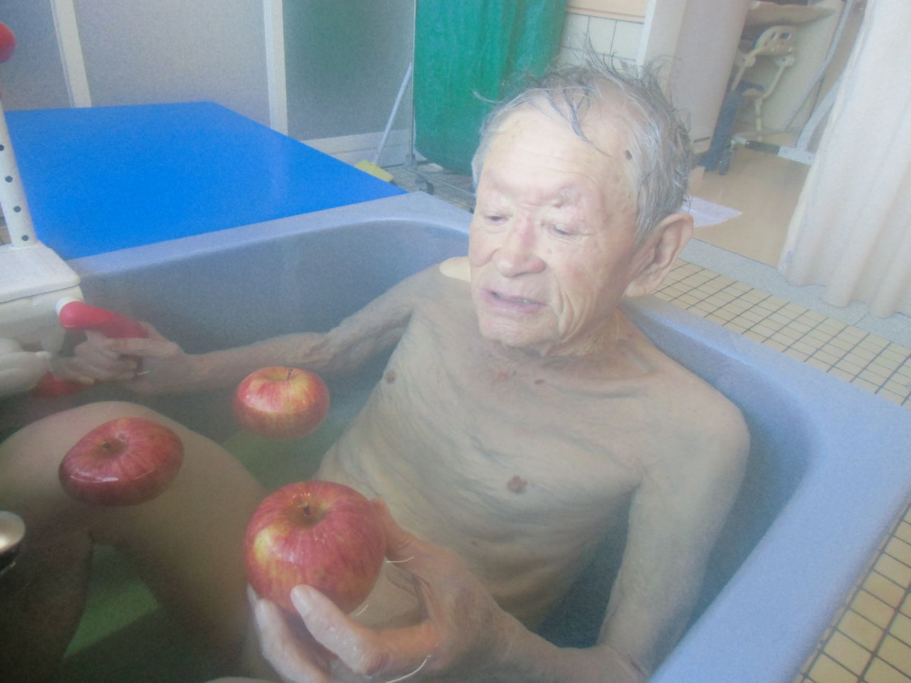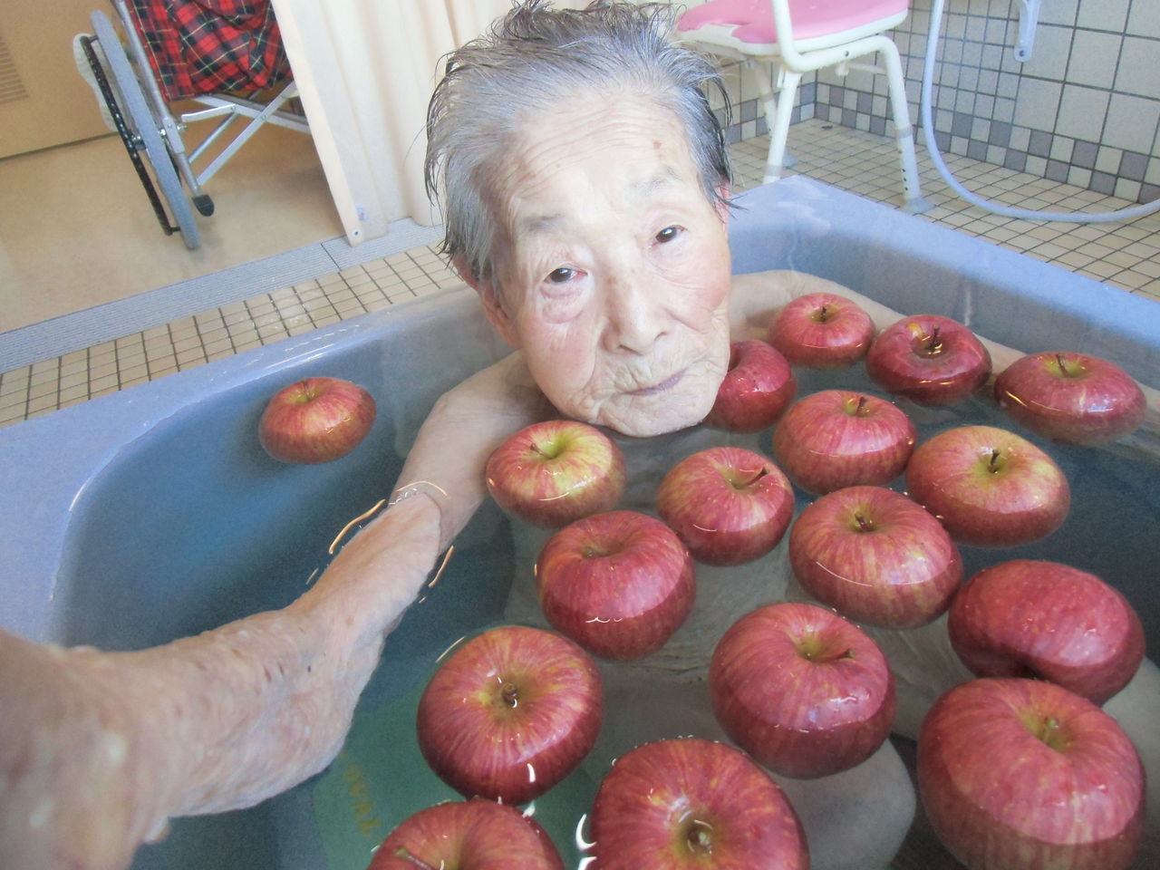 御利用者様もお湯一面に浮かぶたくさんのリンゴを見たり、香りを楽しんでいただきました。リンゴ湯の効能は美肌や疲労回復、そして皆様の笑顔は私達職員にとっての効能です。