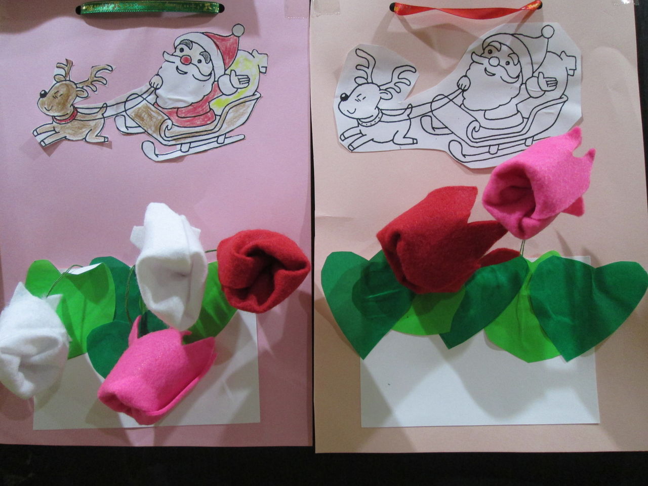 さらに靴下やステッキ、ローソクを作って飾り、クリスマスツリーが完成です。