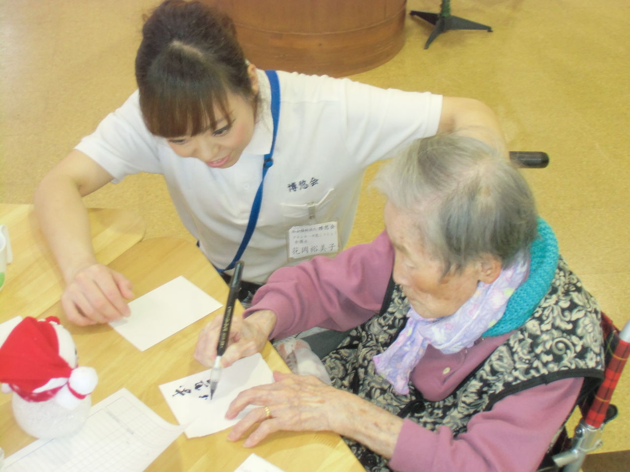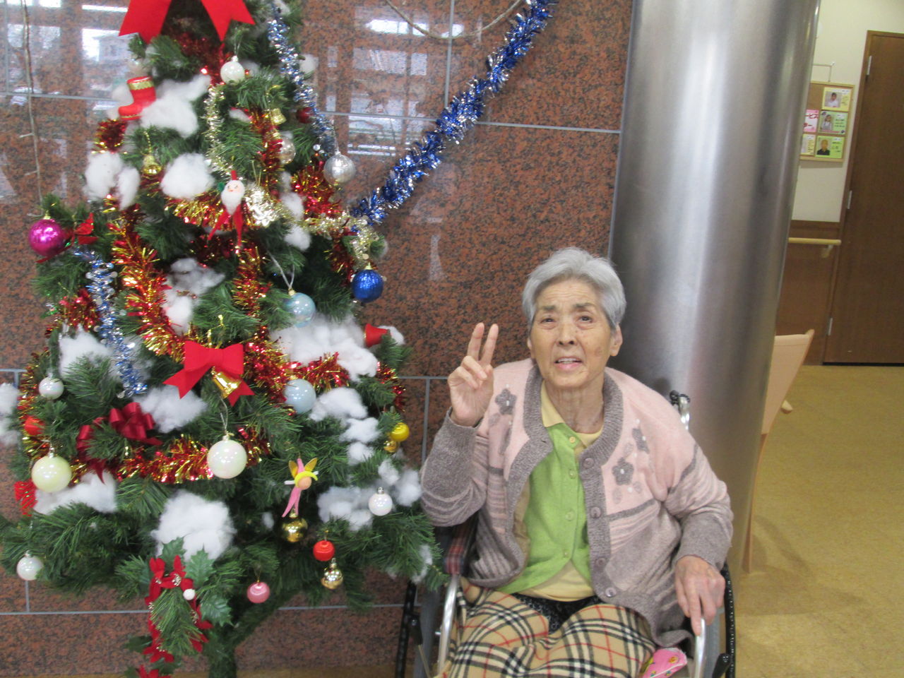 デイサービスでは今月「クリスマス」をテーマに、作品を作り壁に飾りました。