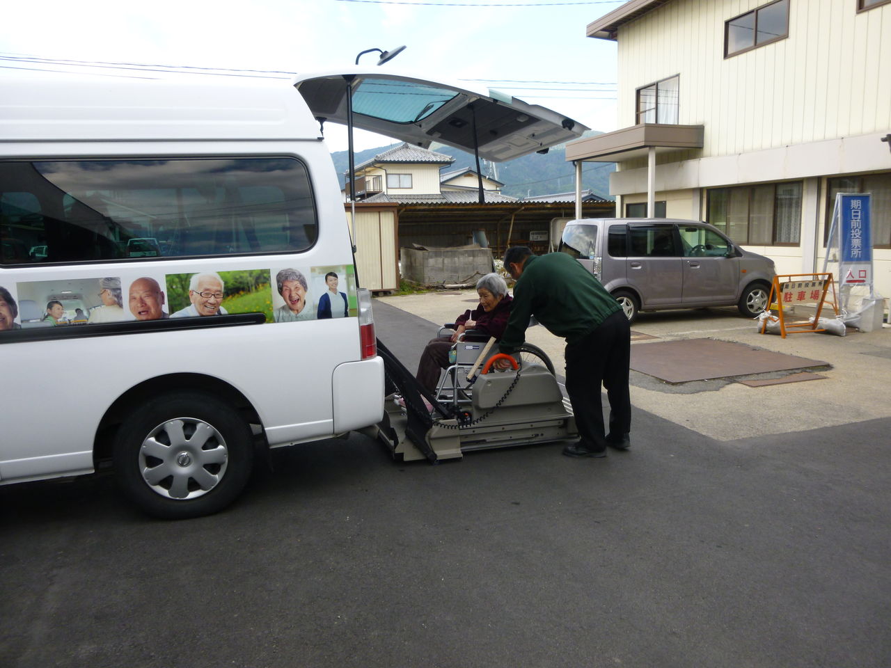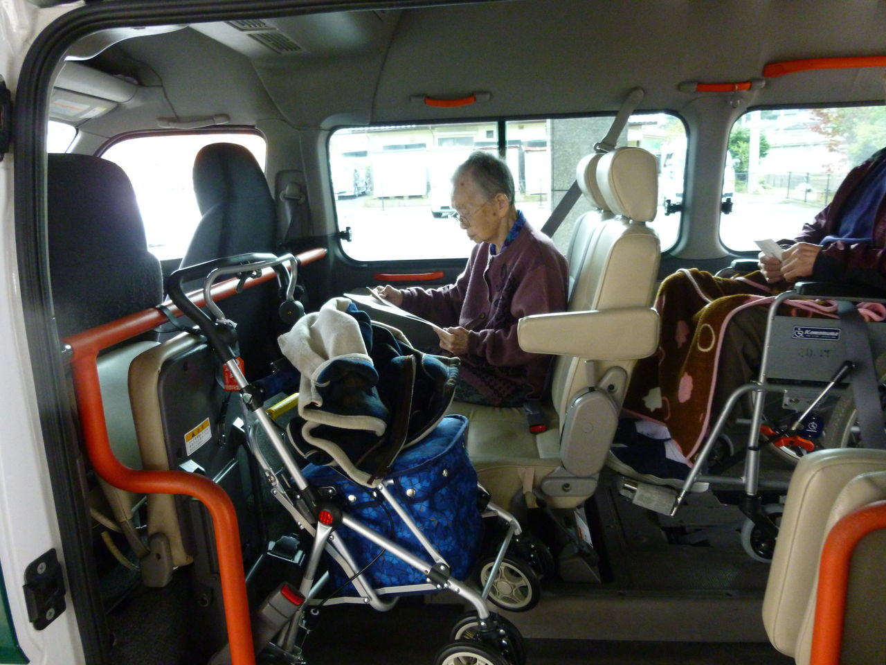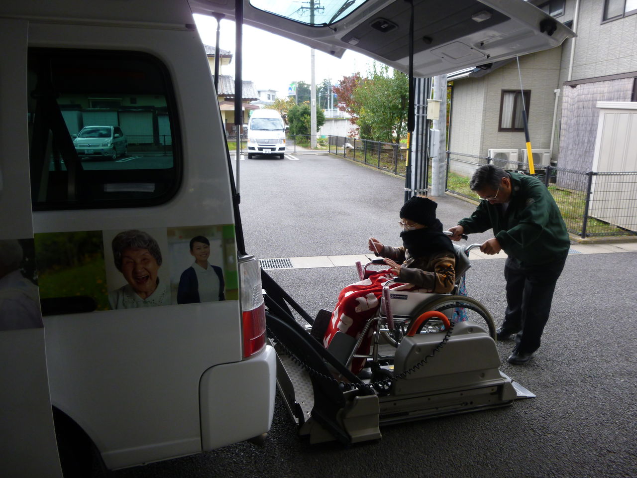 ご利用者様には車椅子や肘掛椅子に座った状態で