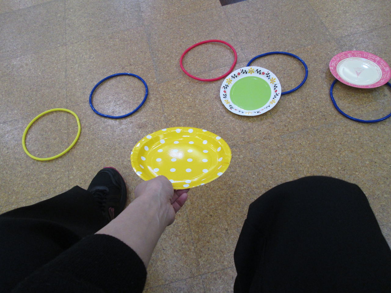 輪と紙皿を使い、「チーム対抗フリスビー」を行いました。