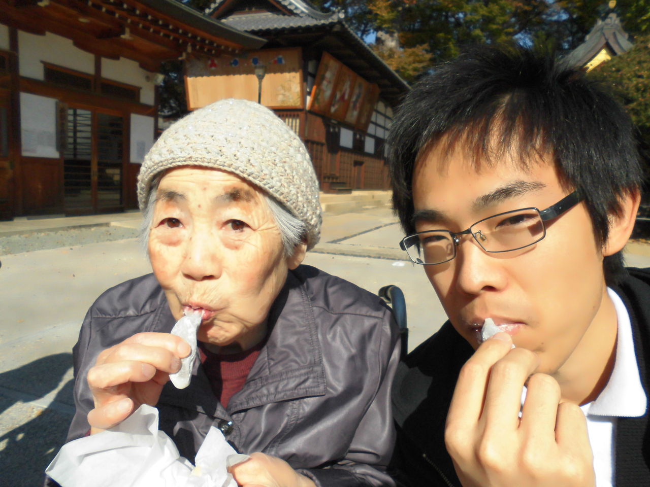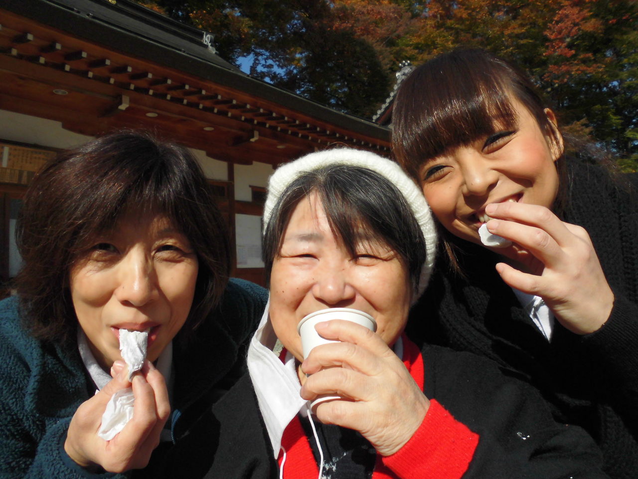 境内をお借りして、皆でおいしく頂きました。