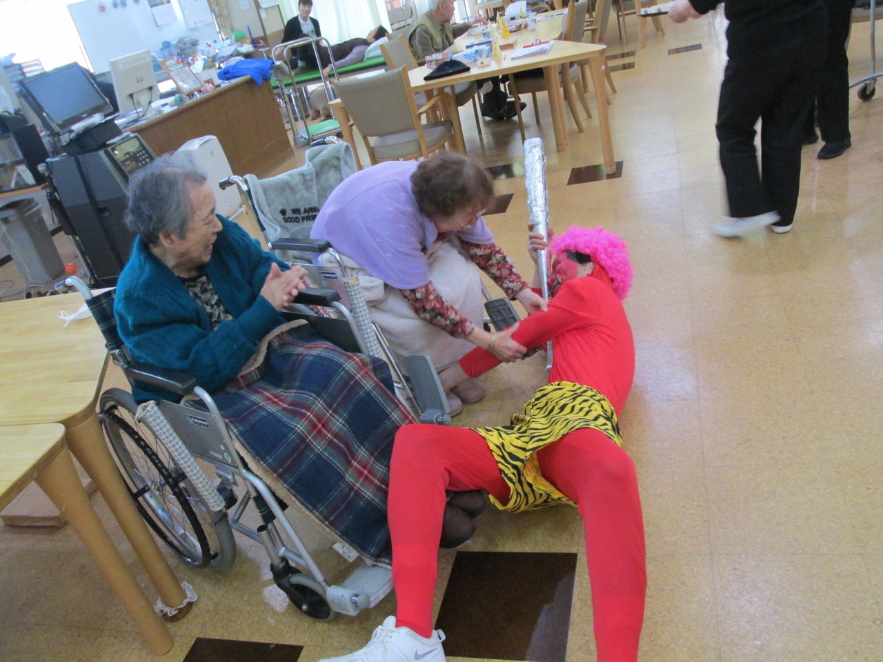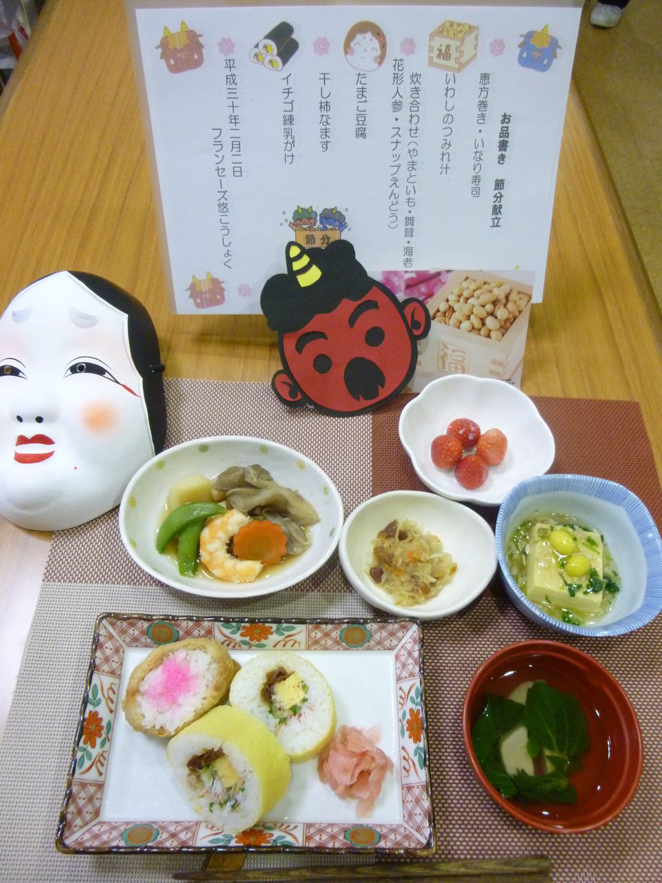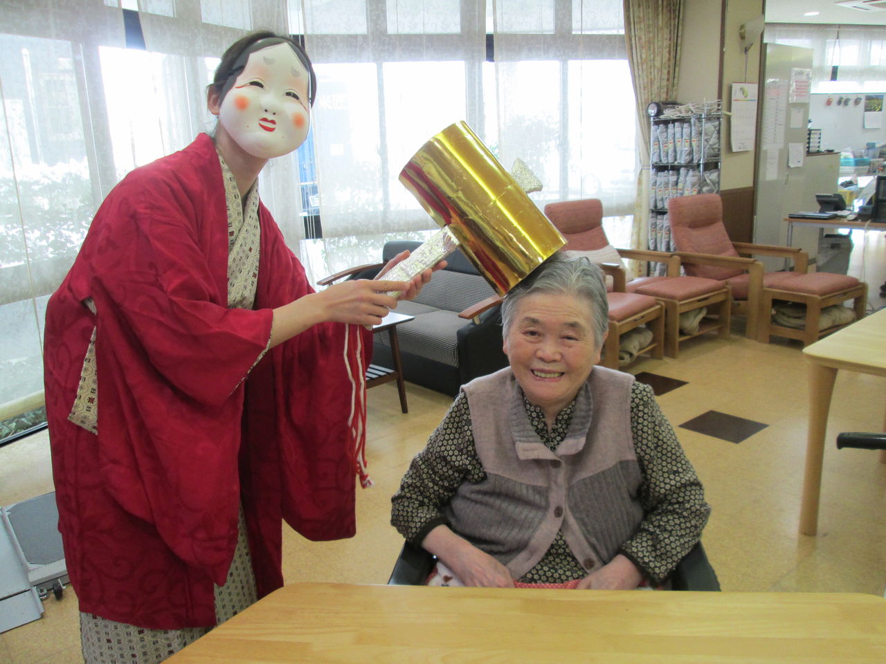 2/2は、デイサービスの皆さんと入所の方々とで、大きな声で豆まきをしました。
