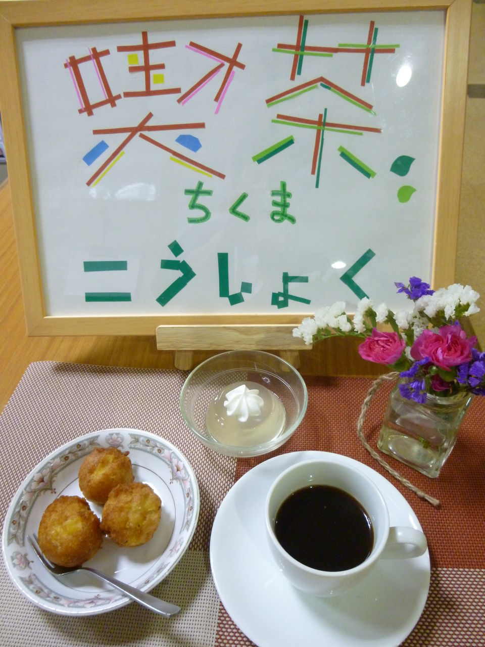 ミニ喫茶でのメニュー 利休まんじゅう、バレンタインチョコレートケーキ、五平餅、フレンチトースト…