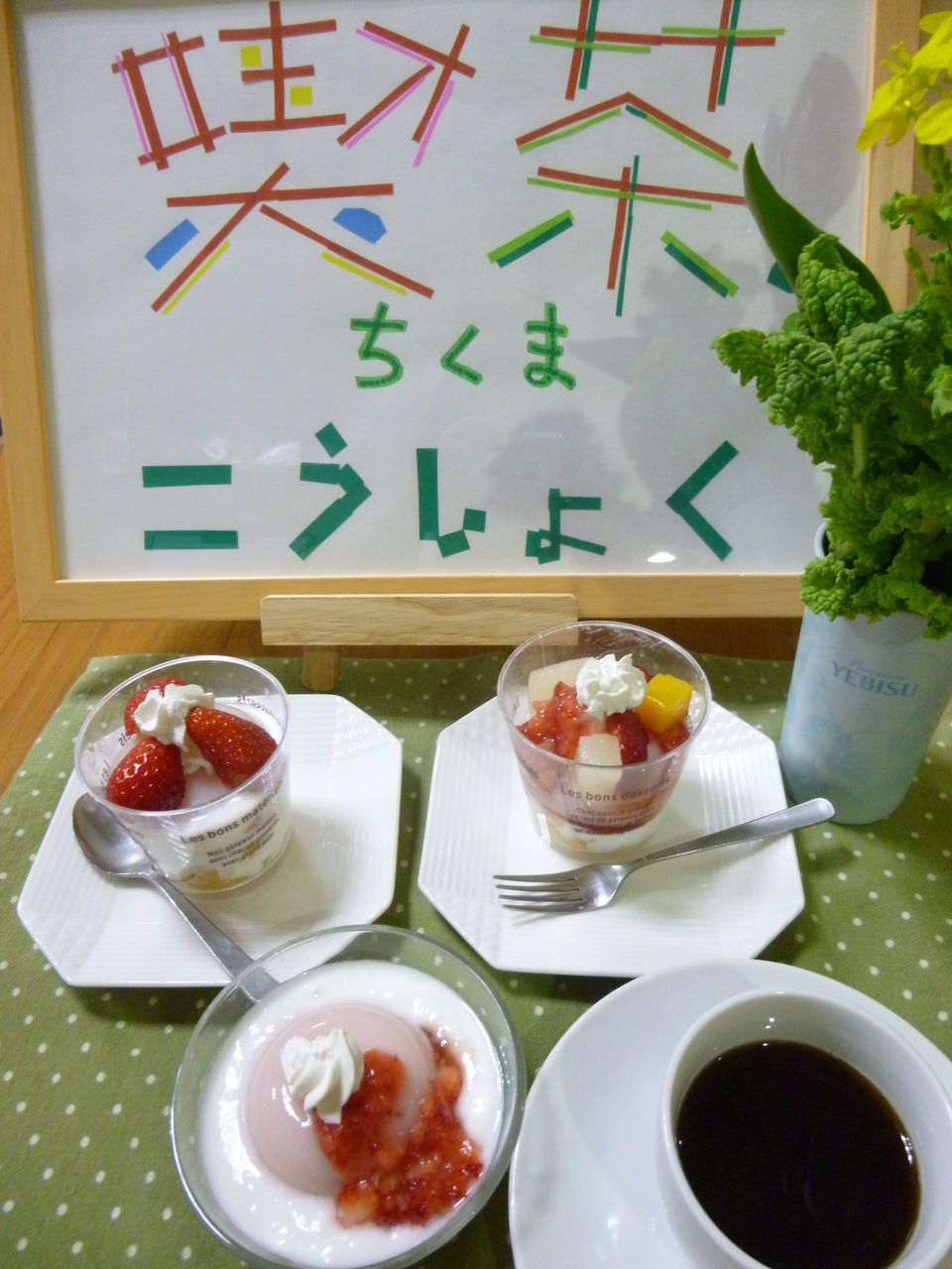 喫茶ちくまでは甘酸っぱいいちごパフェを召し上がっていただきました