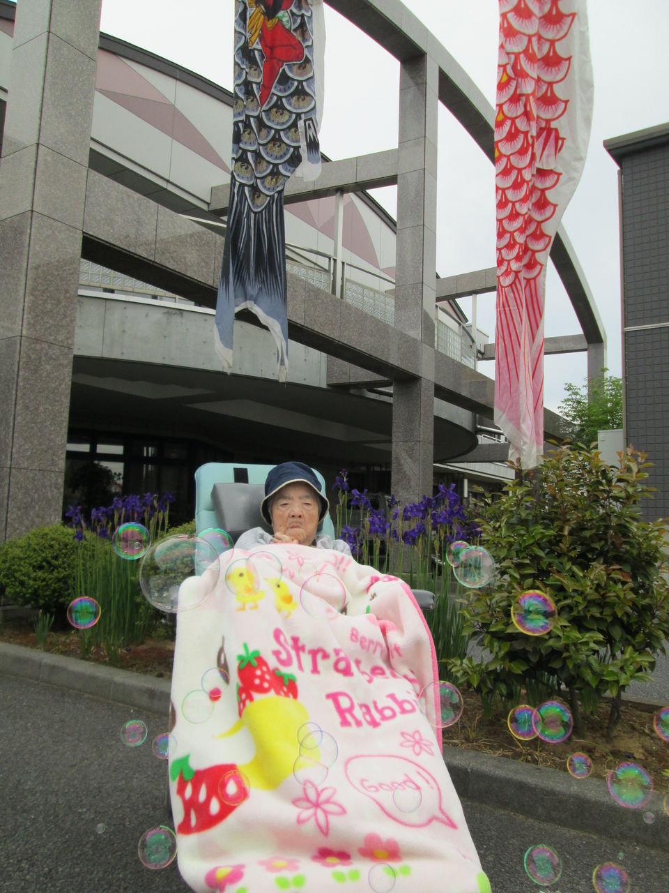 また外では鯉のぼりが飾られて施設前にて写真を撮りました。