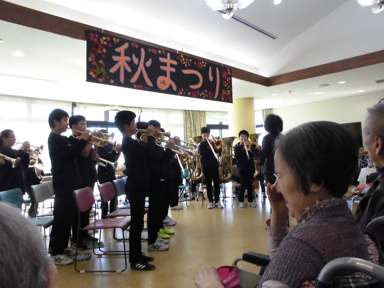 また、昨年に引き続き、2組のスペシャルゲストに起こし頂きました。一組目の治田小の金管バンドは、東海大会で銀賞を受賞された素晴らしいバンドです。「信濃の国」の演奏を聴きながら涙されていた御利用者様が、ききょう棟にも何名もいらっしゃいました。皆様のお孫様や曾孫様と重なって見えたのでしょうか。素敵な演奏、本当にありがとうございました。