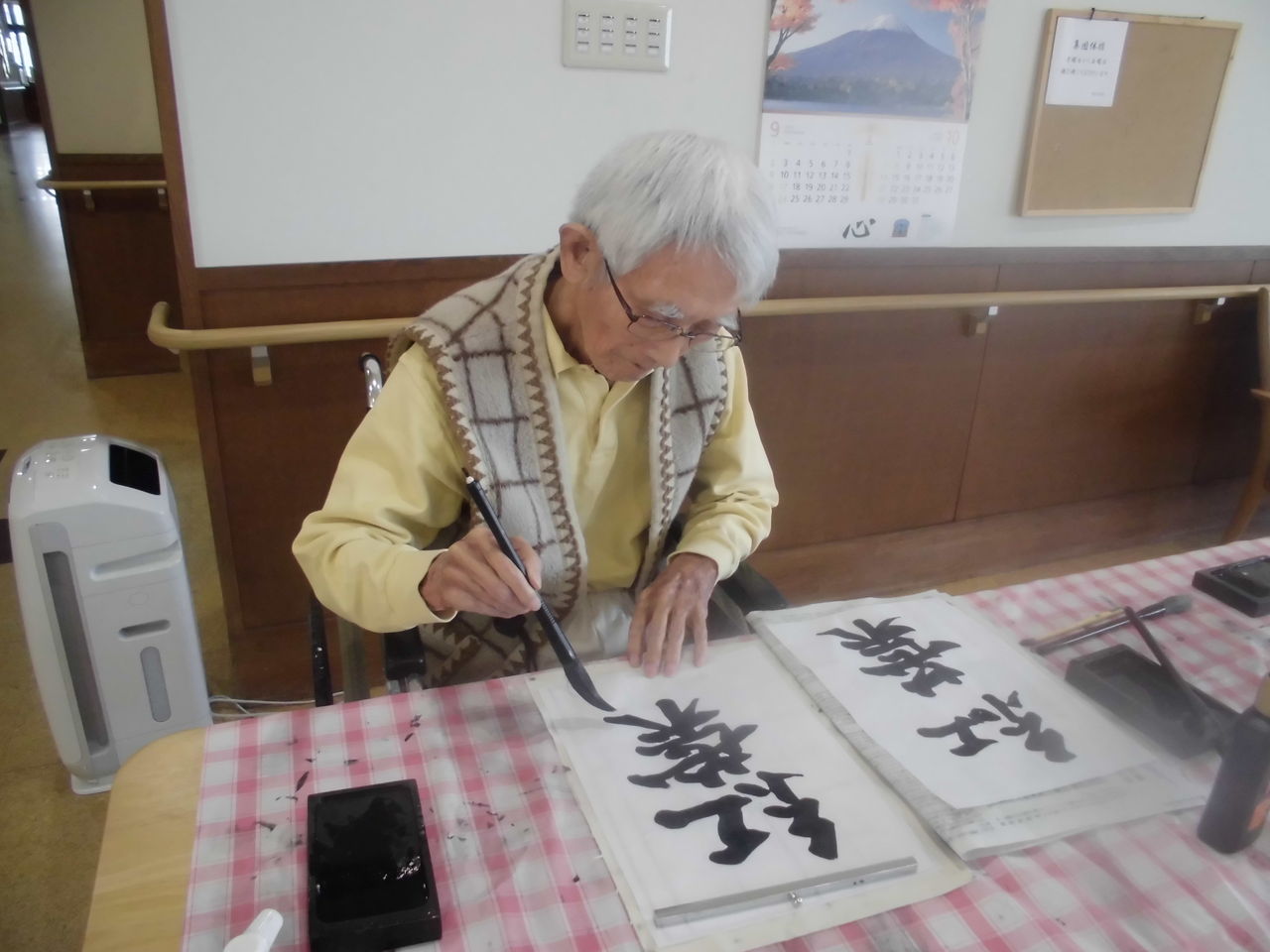 今月は「紅葉」と書いて頂き、上手に書かれていらっしゃいました。