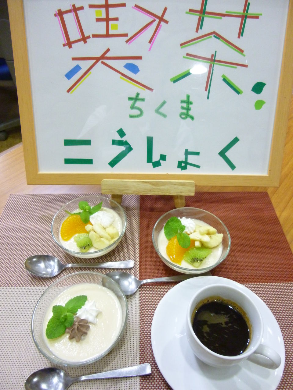 喫茶ちくまではご家族も一緒にプリンアラモードを召し上がっていただきました。