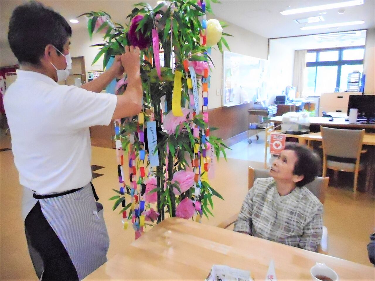 短冊には新型コロナウイルスの収束や無事にお生まれになられた曾孫さんの安穏と成長、