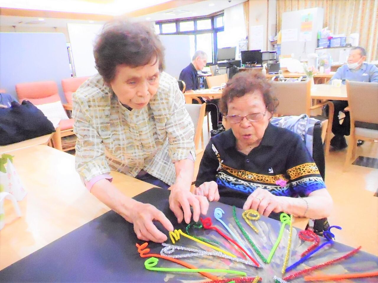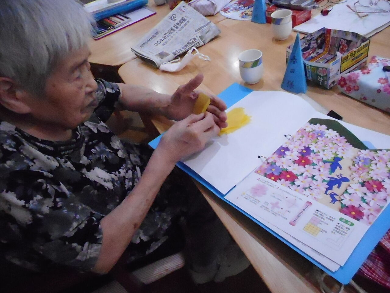 秋に向け、午後のティータイムの前後にのんびりとコスモスの花作りを行いました。