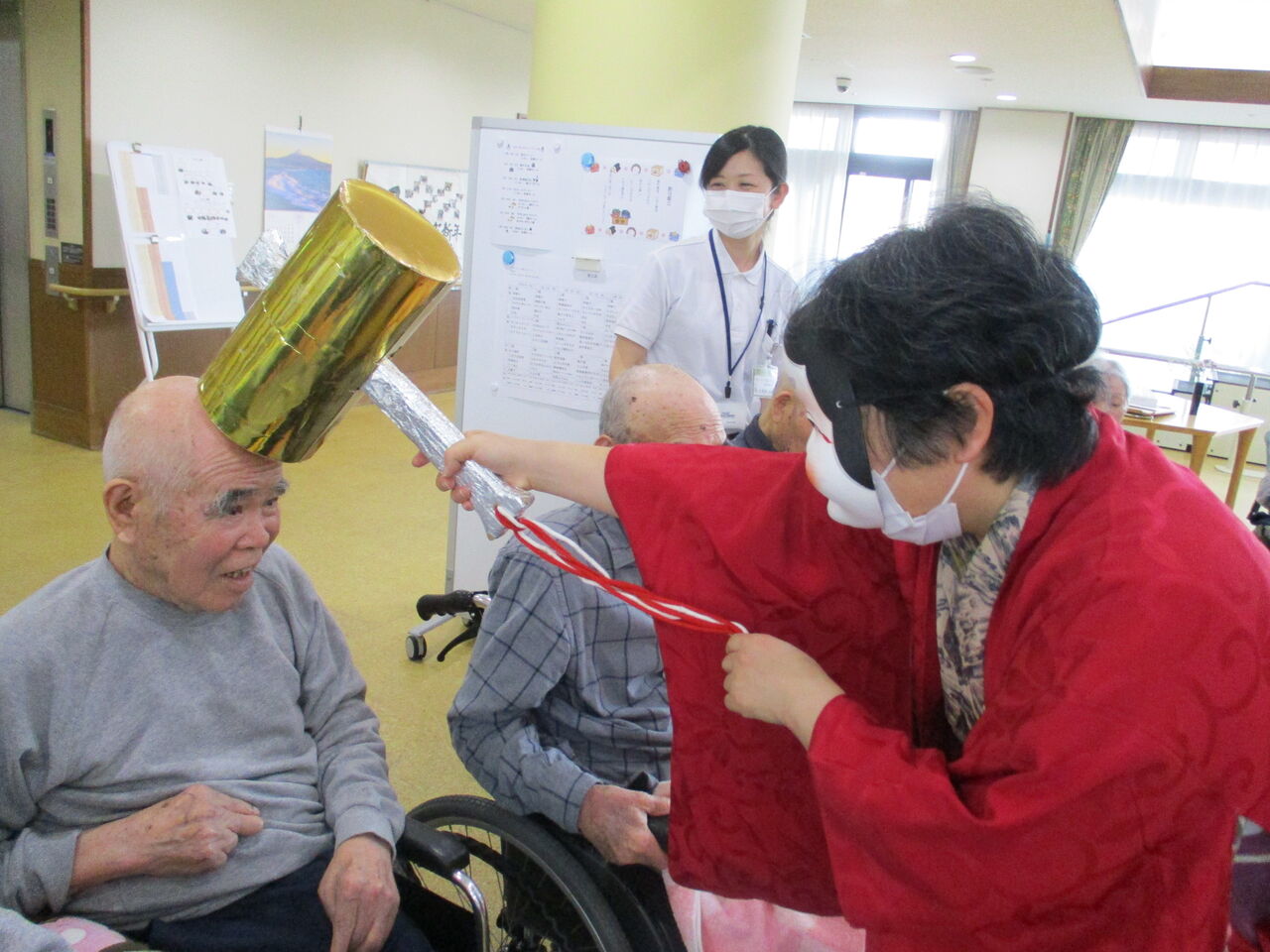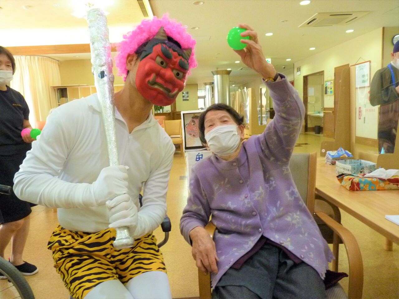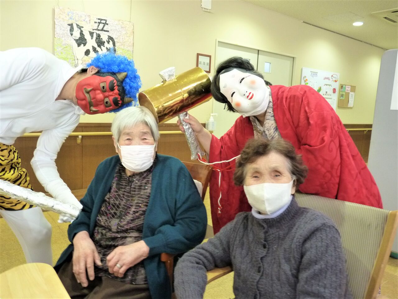 節分ウイークに、職員とご利用者様で制作した「鬼マシーン」で鬼退治レクを行ないました。