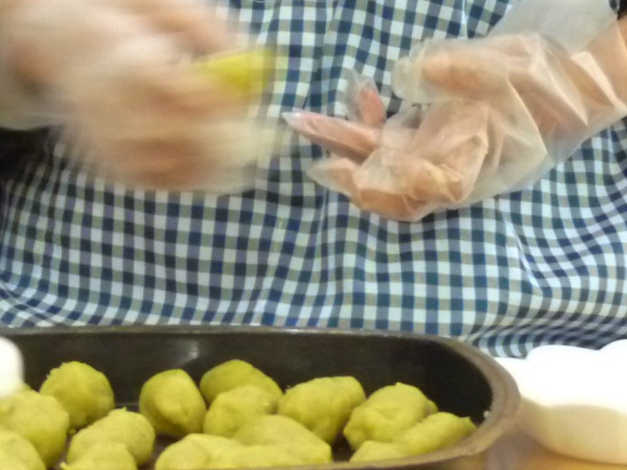 先月収穫したサツマイモがひと口サイズの可愛らしいスイートポテトに生まれ変わりました。