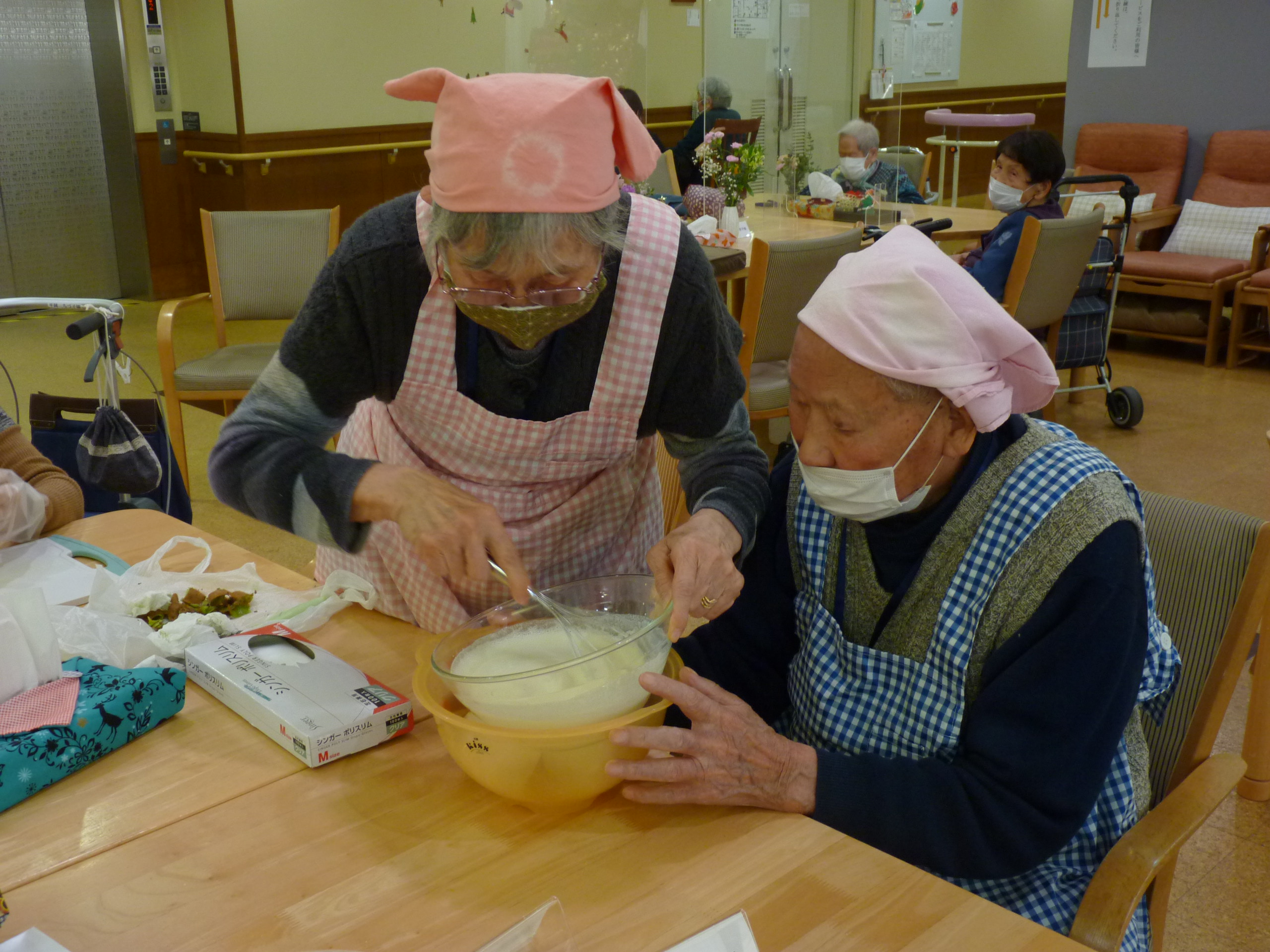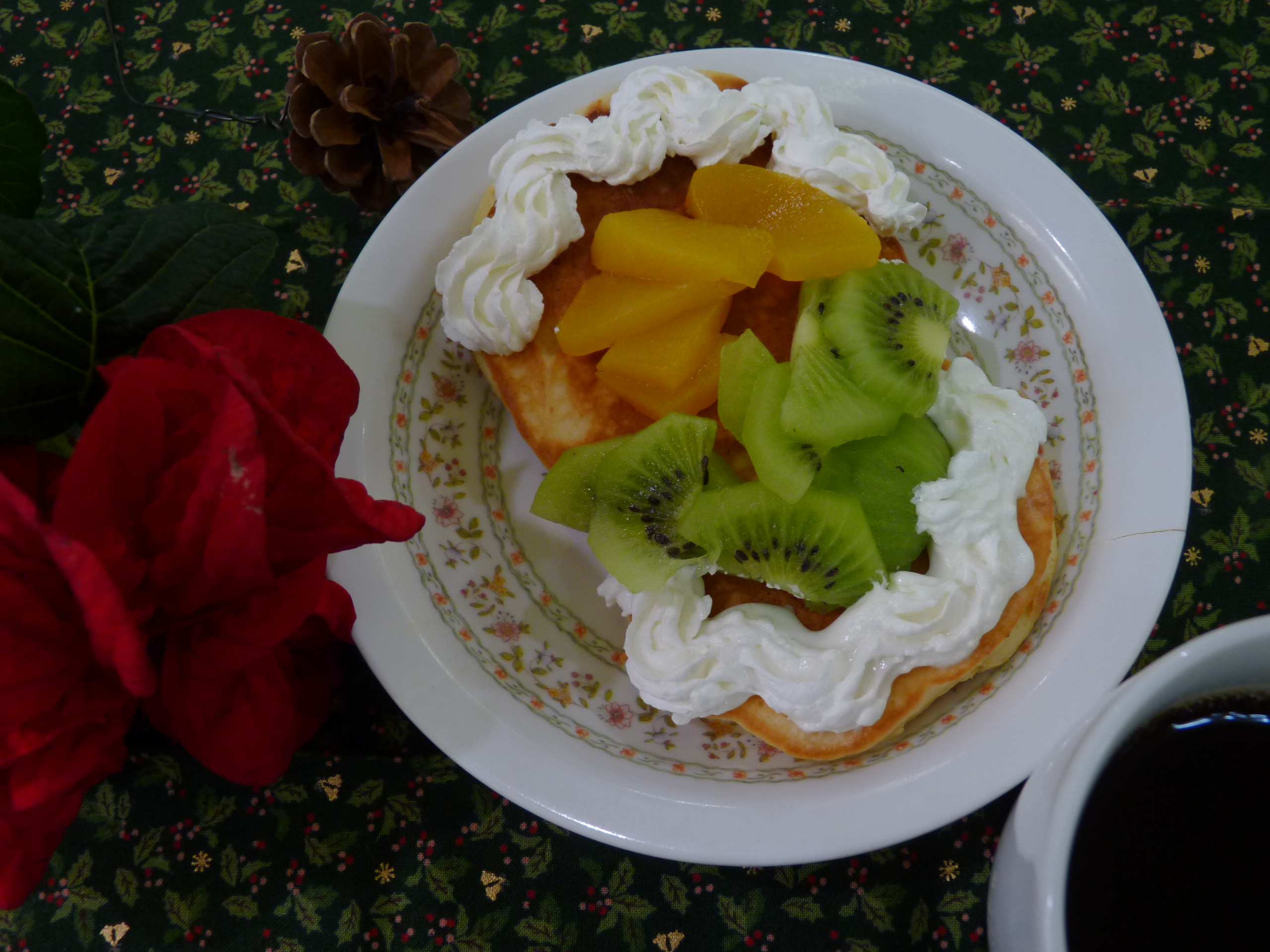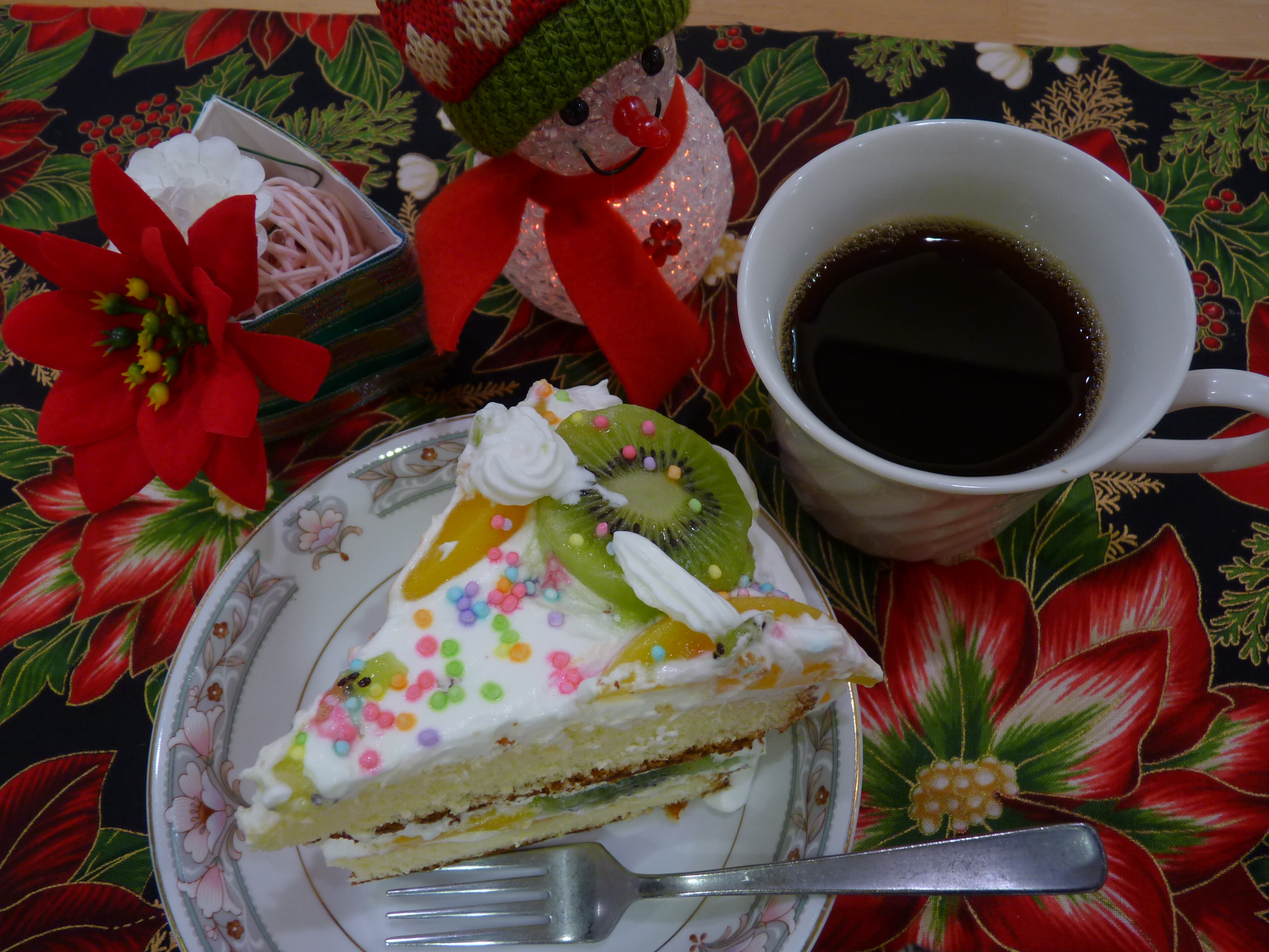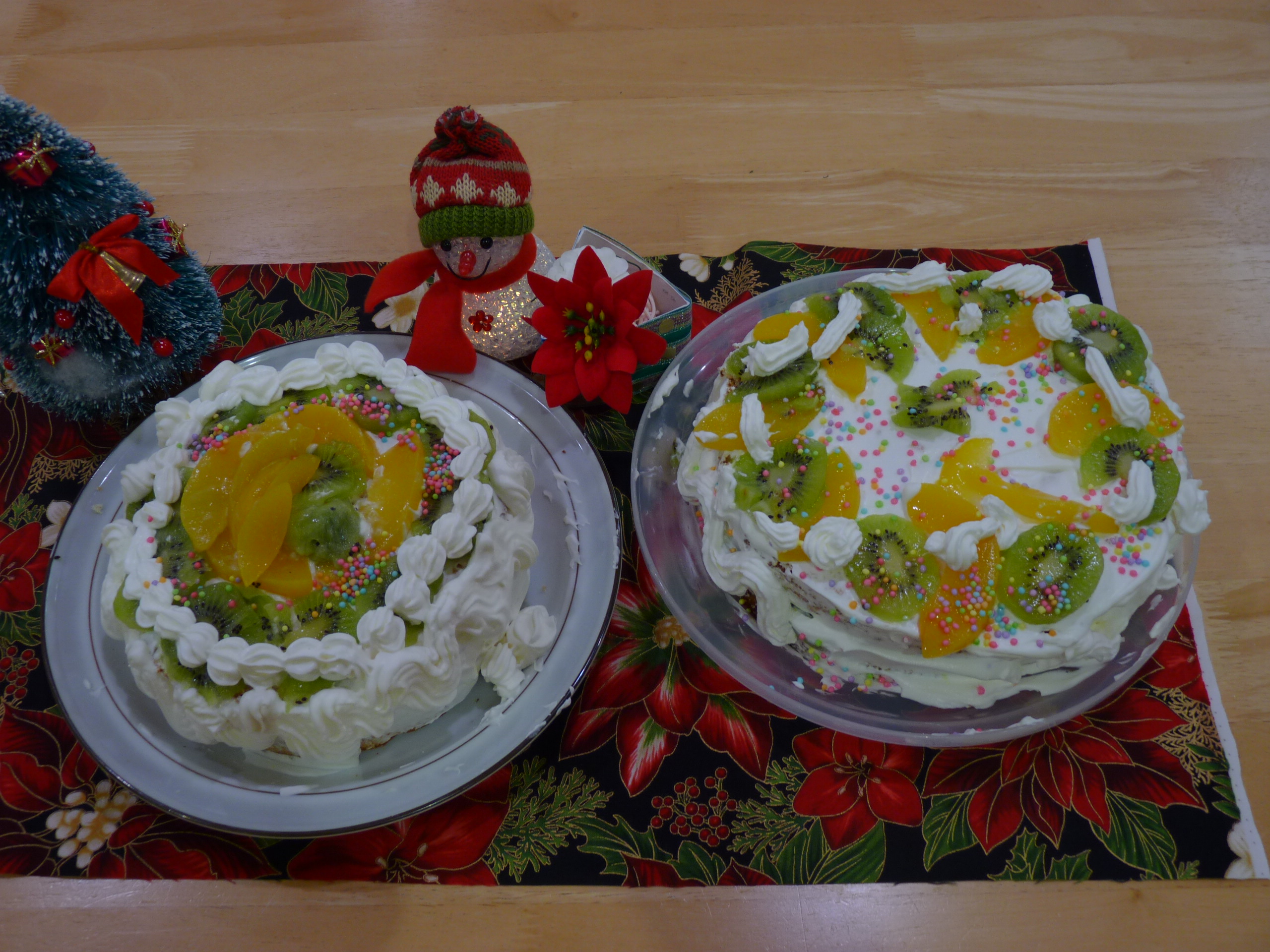ひと足早い楽しみとして、クリスマスケーキとホットケーキを作りました。
