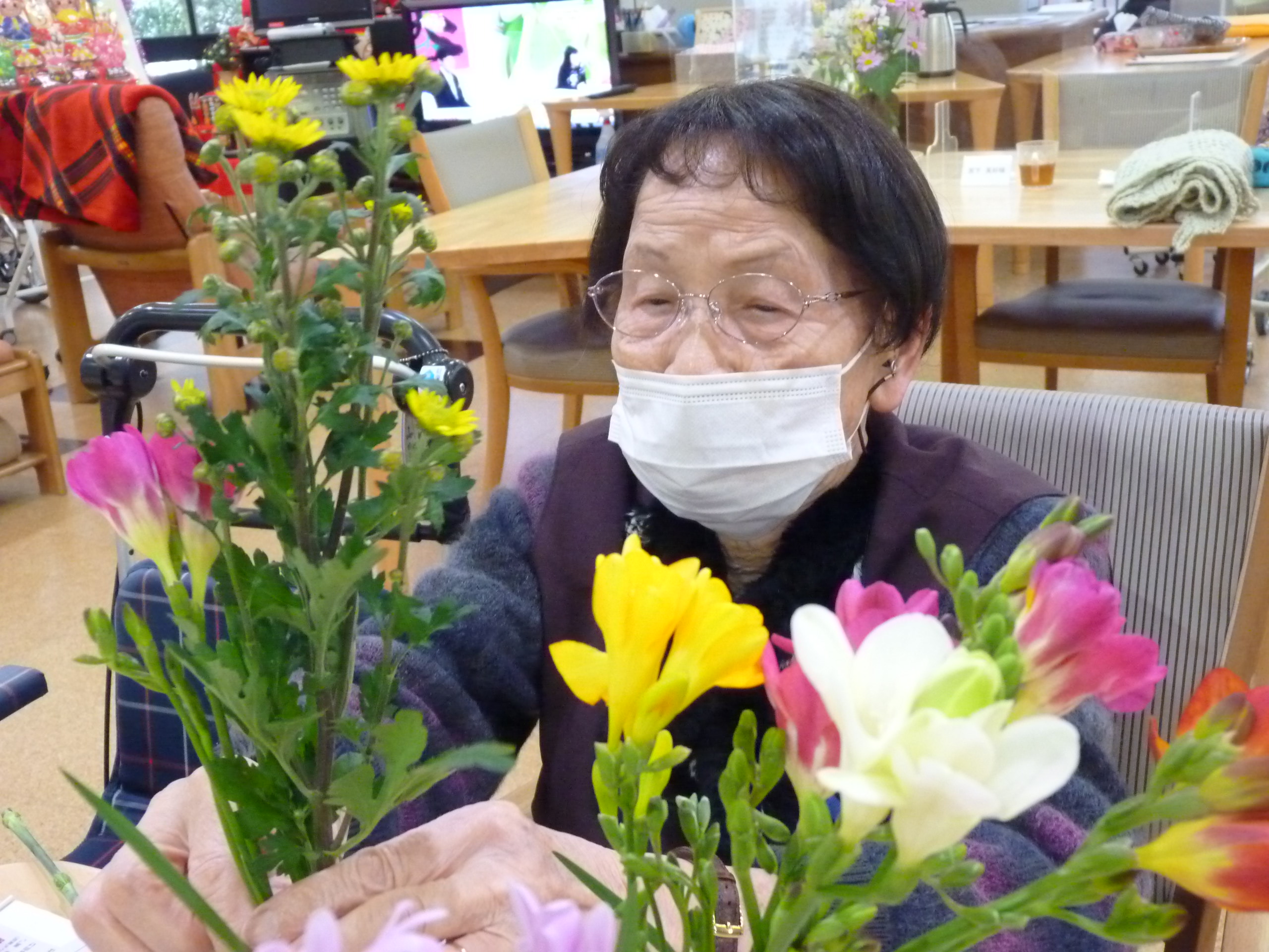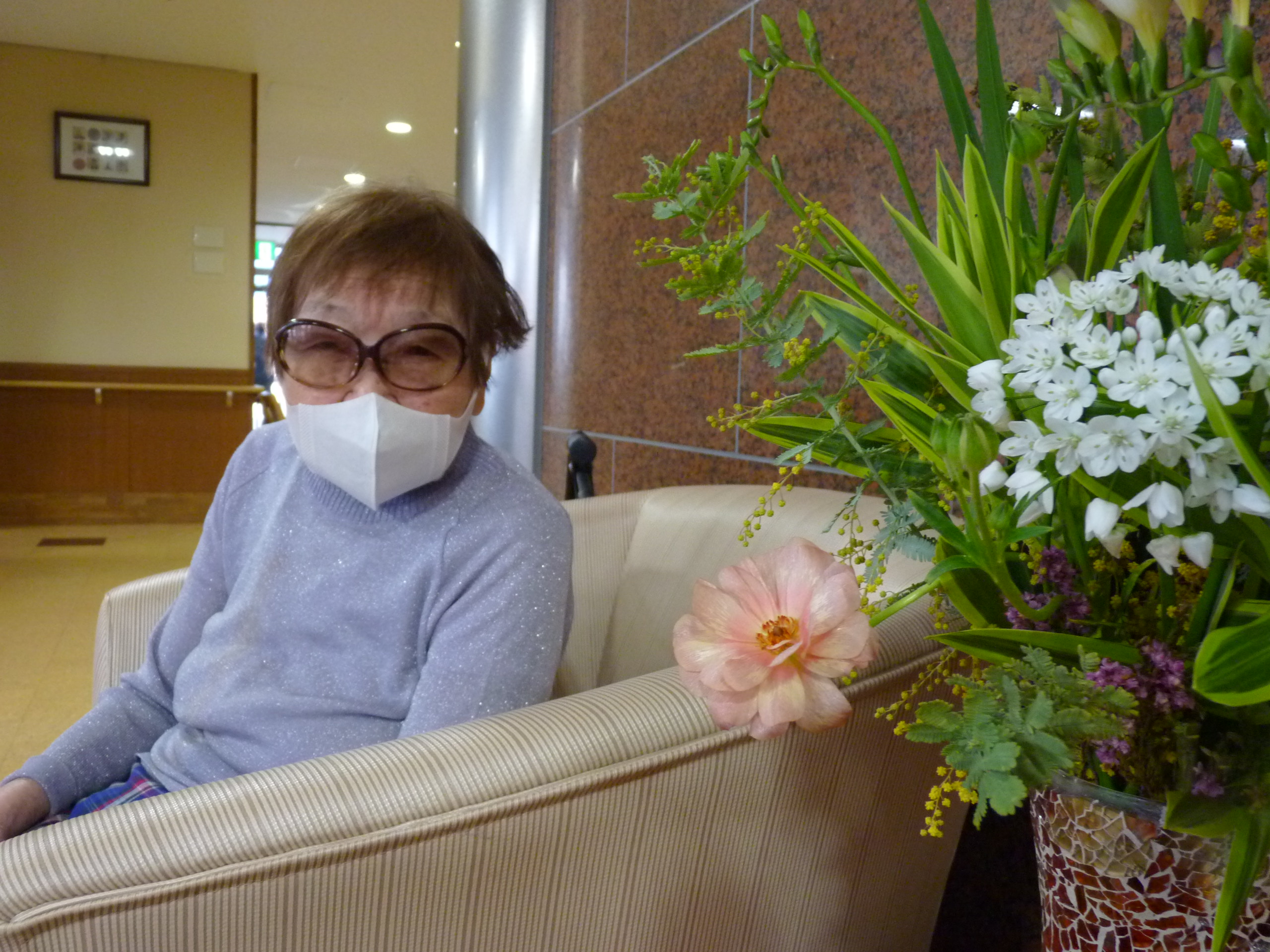 ご利用者様がテーブルに花を飾って下さると、男女問わず皆様が花を愛でる瞬間がみられました。