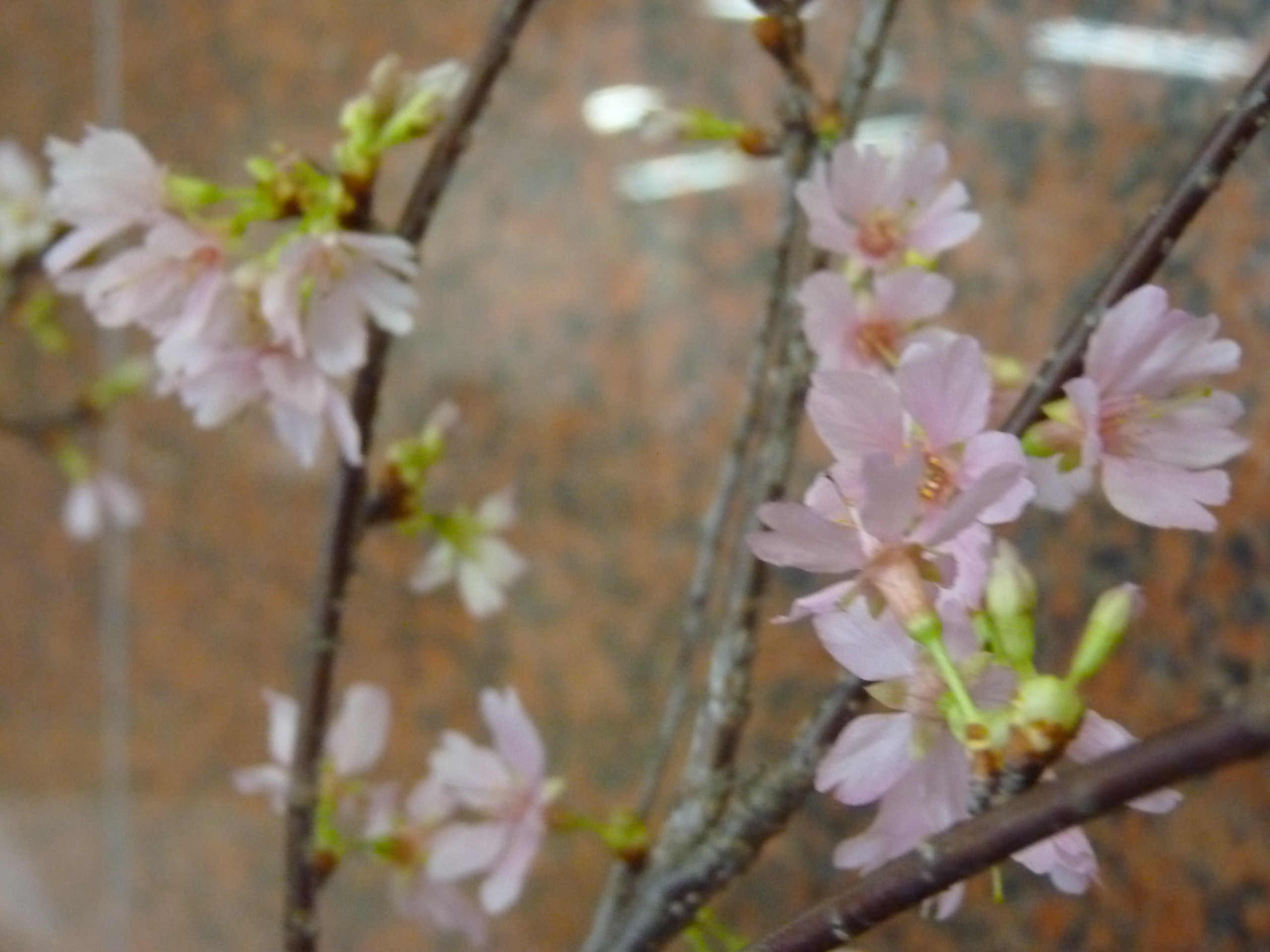 デイホールには、いろいろな方の手によって春の花(桜・フリージア・小菊)が集まり、