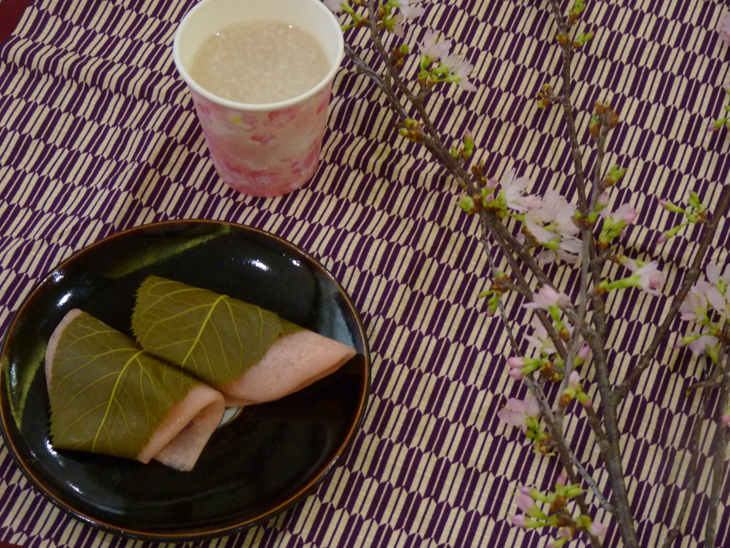 桃の節句をお祝いした「桜餅」は、上新粉を入れた皮がふっくら・しっとり・もちもちして、