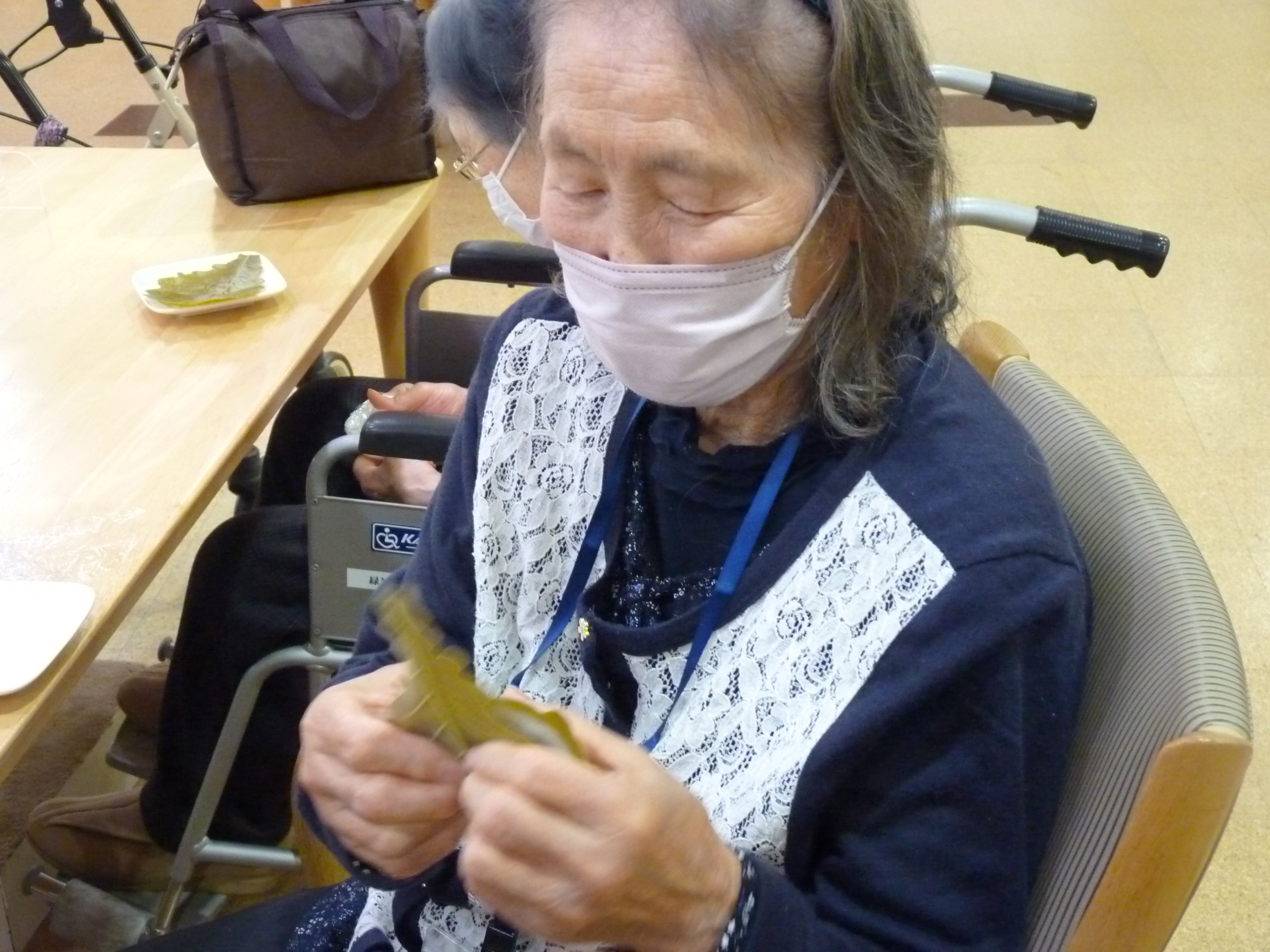 「自分で作ったお味はいかがですか?」と職員に声をかけられると「おいしい!」と笑顔を見せてくれました。