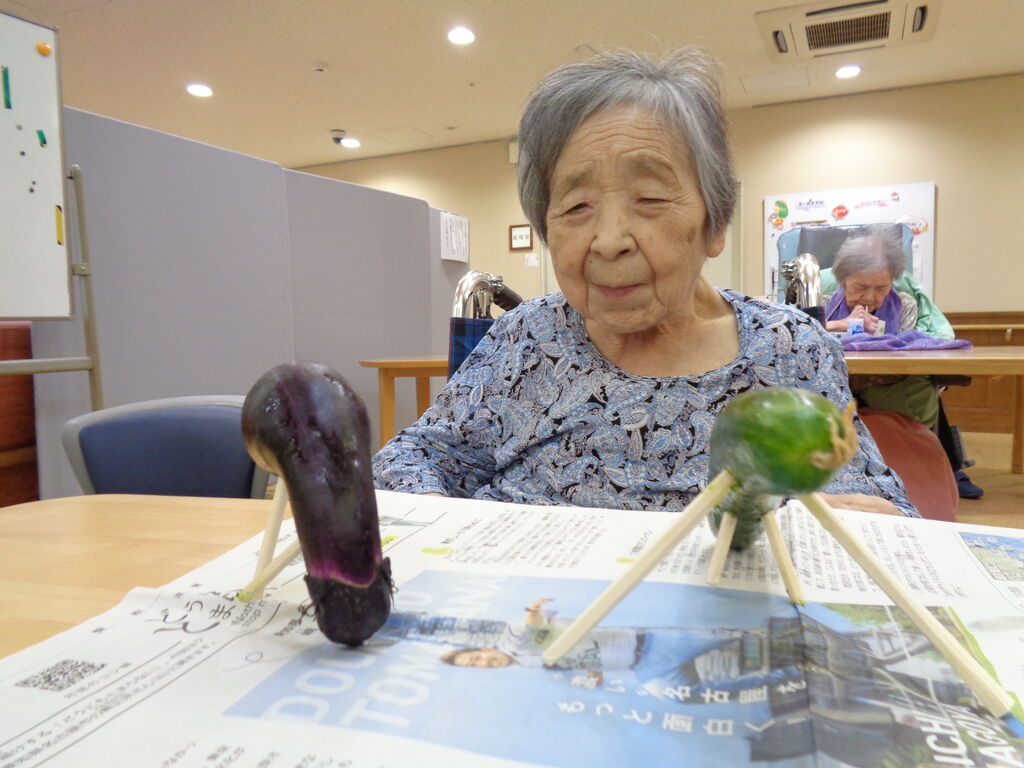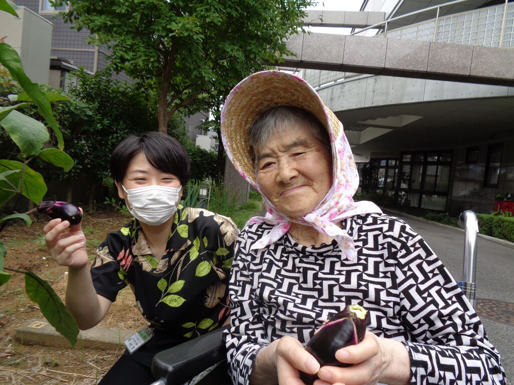 デイサービスで育てているお野菜です。立派なナスに皆様笑顔が溢れます!