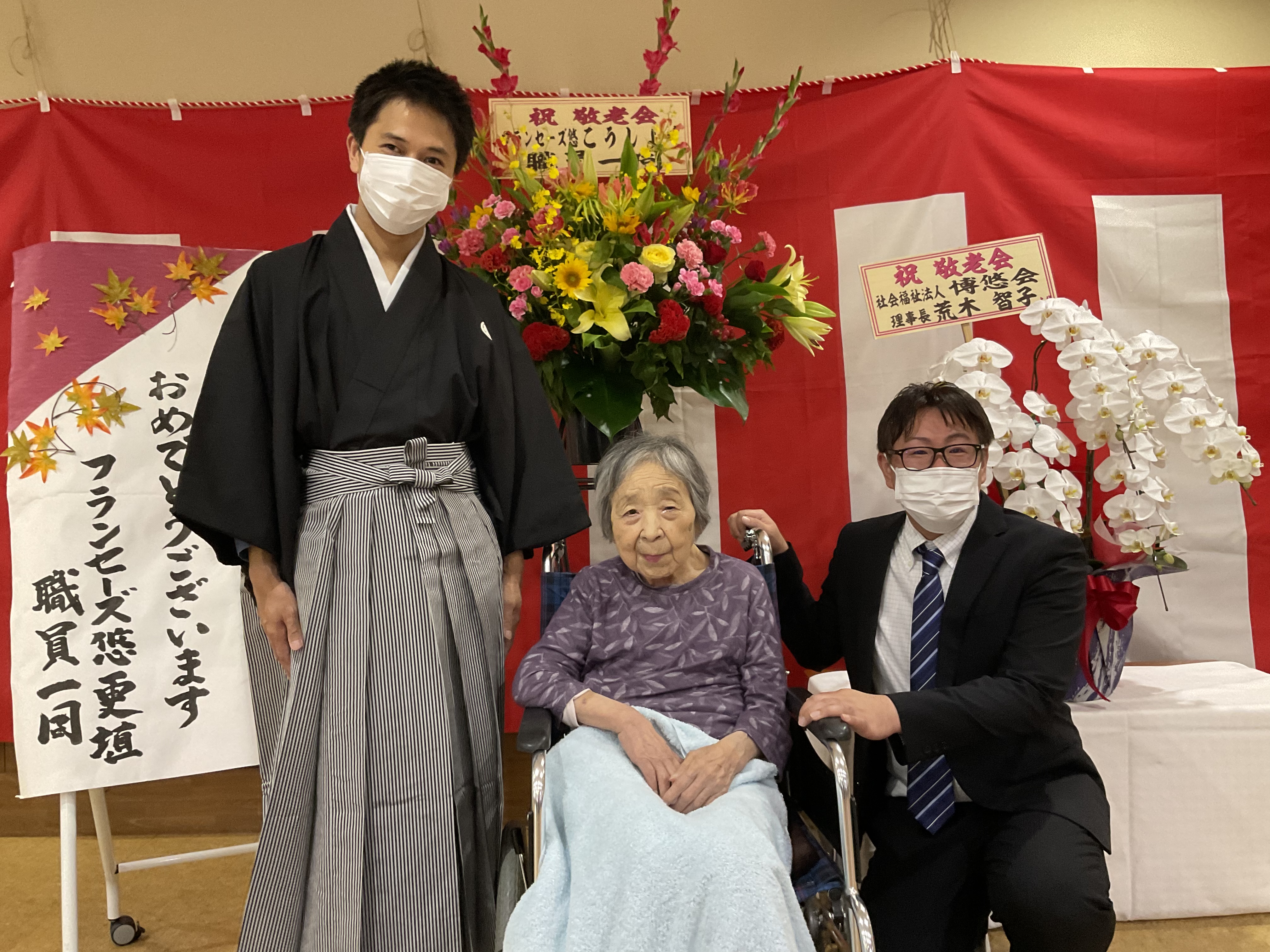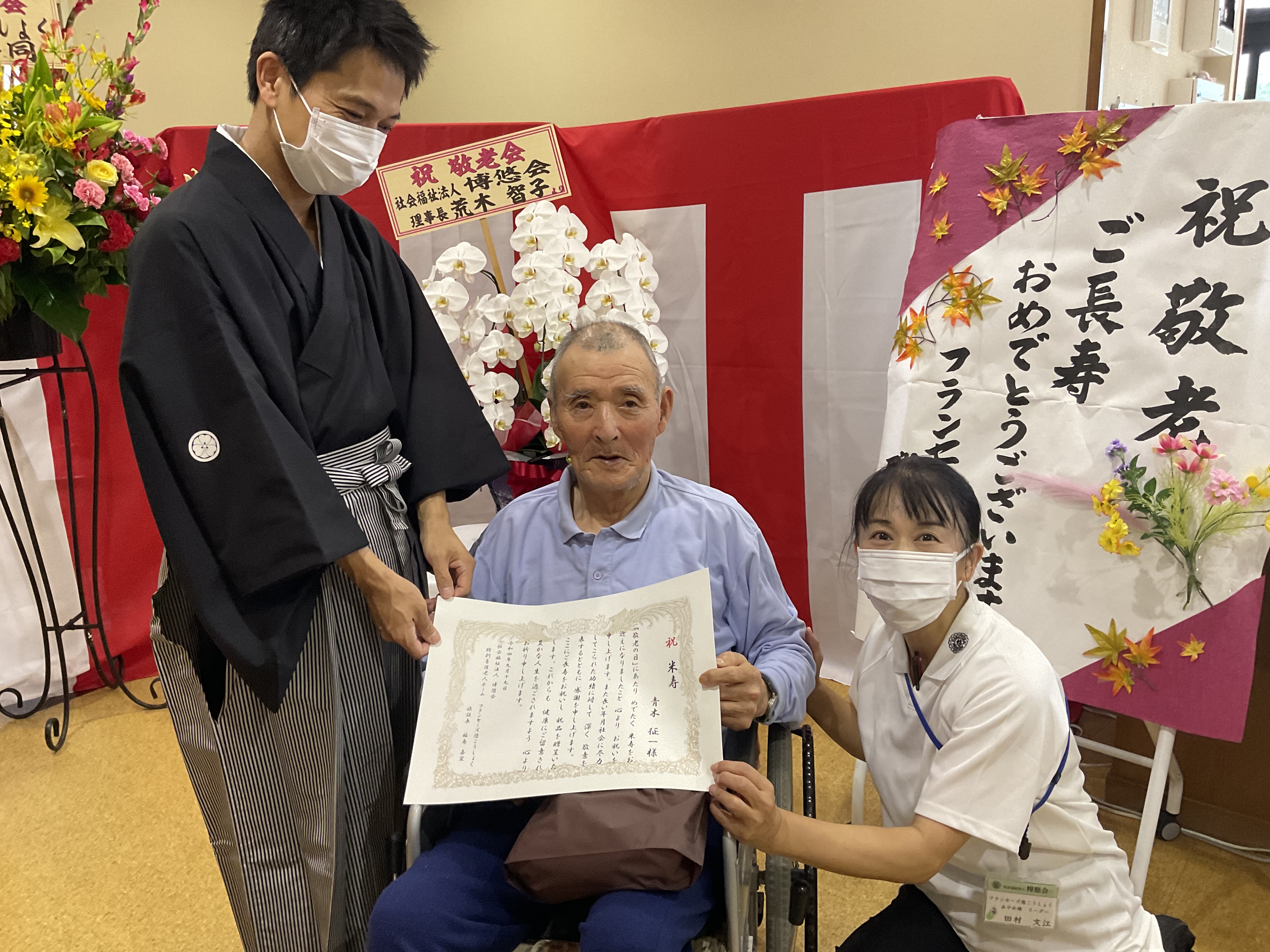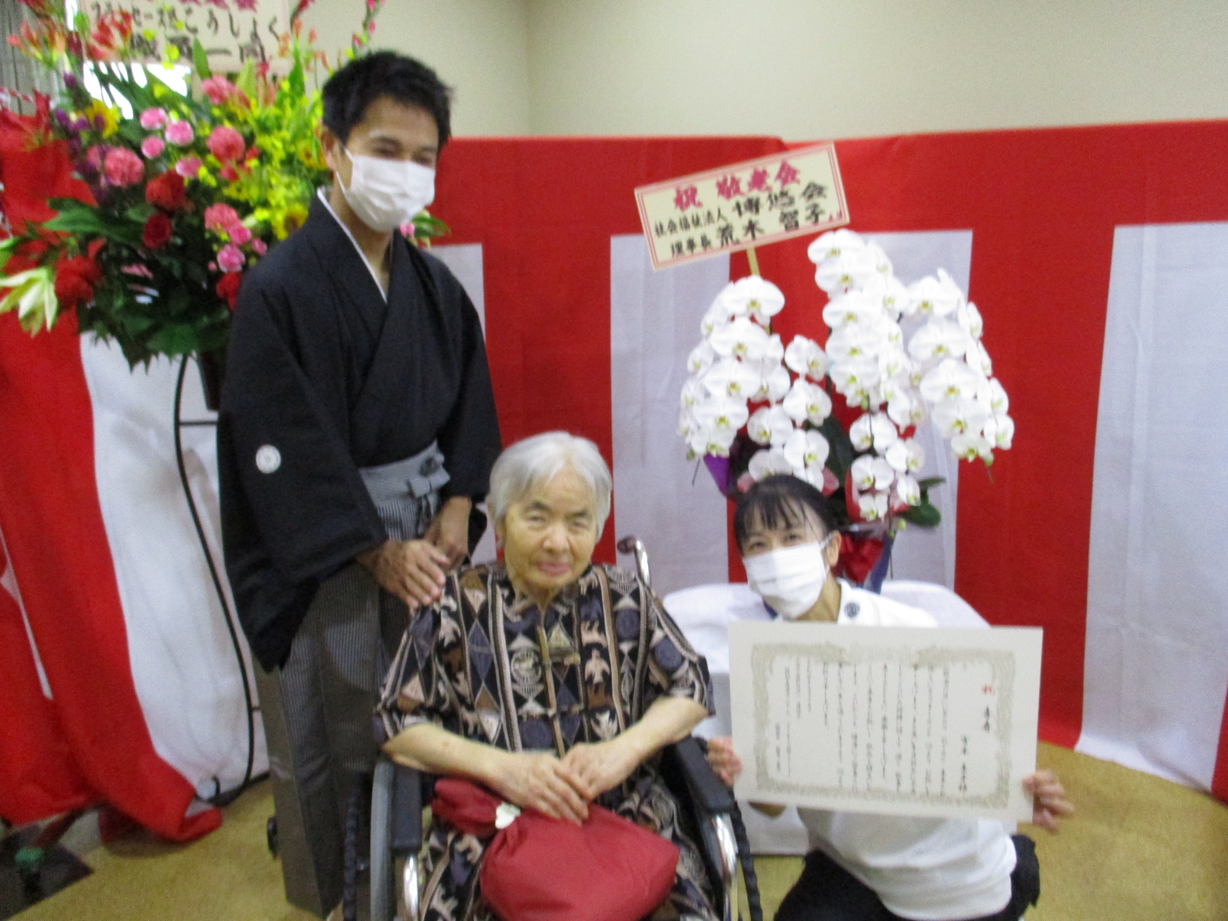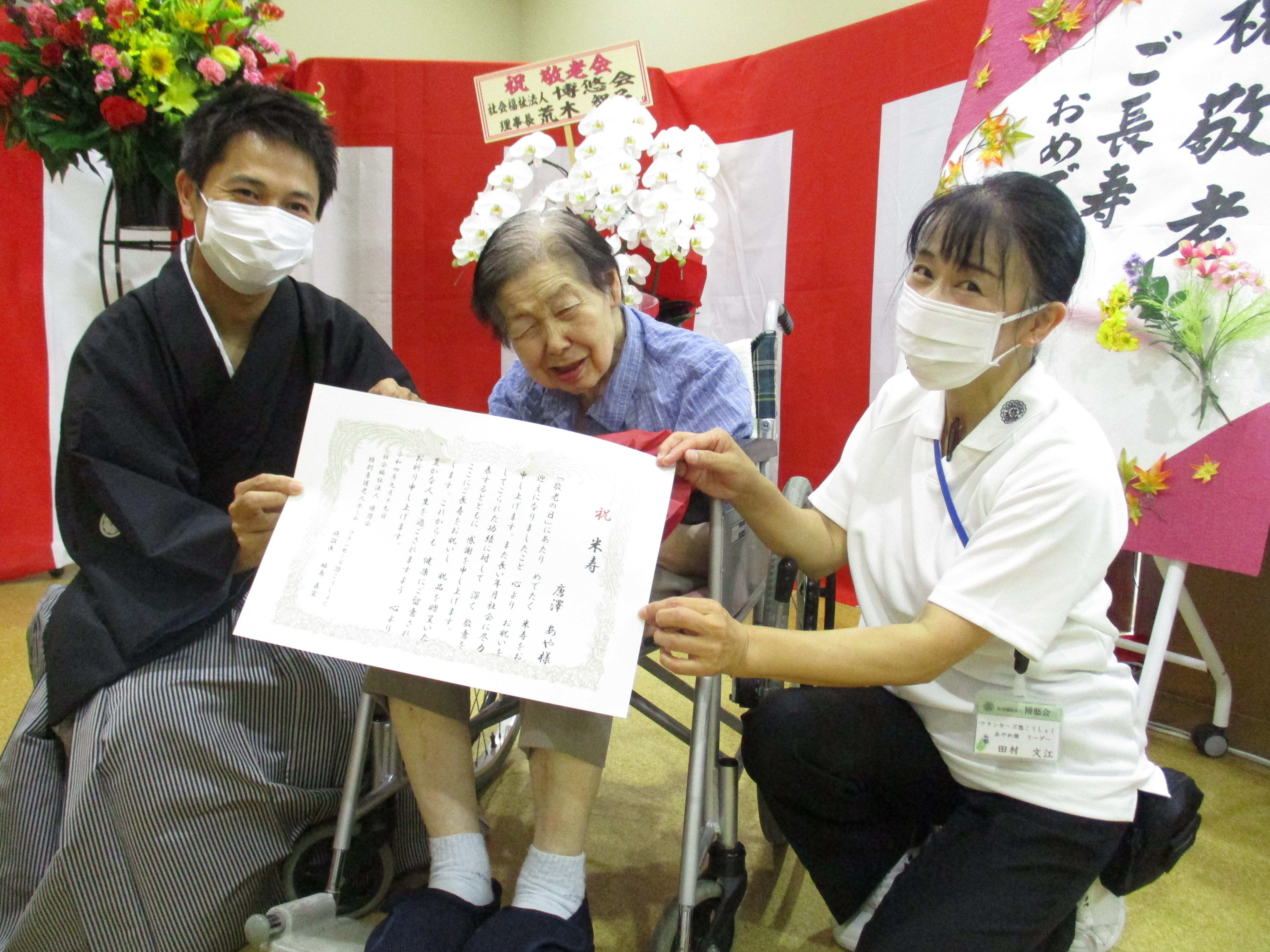 今年は、米寿の方と卒寿の方がいらっしゃいましたので、賞状と記念品の贈呈を行いました。