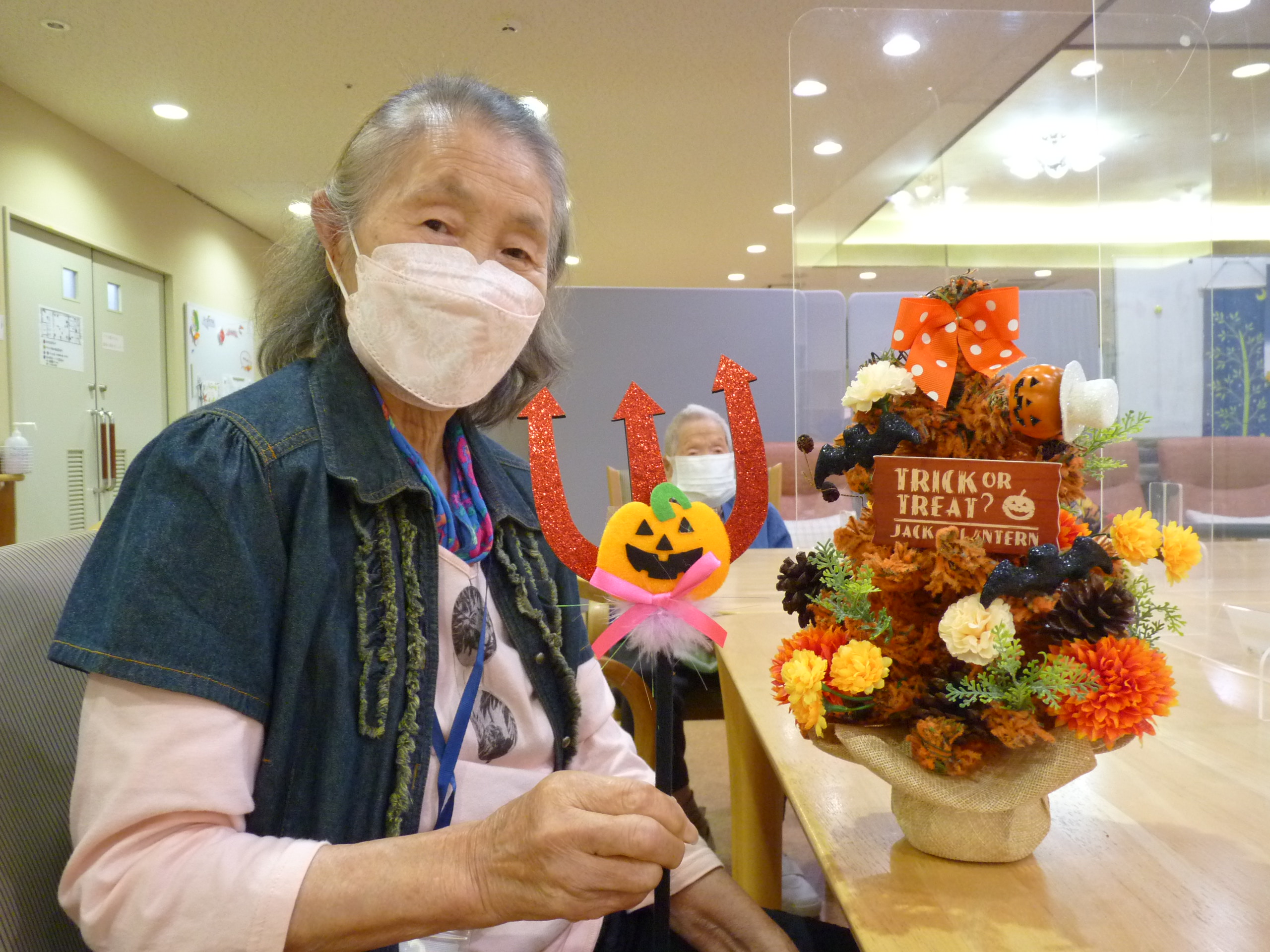 ご利用者様の中には、ハロウィンを知らないという方もいましたが、かわいい飾り物に楽しんでいらっしゃいました!