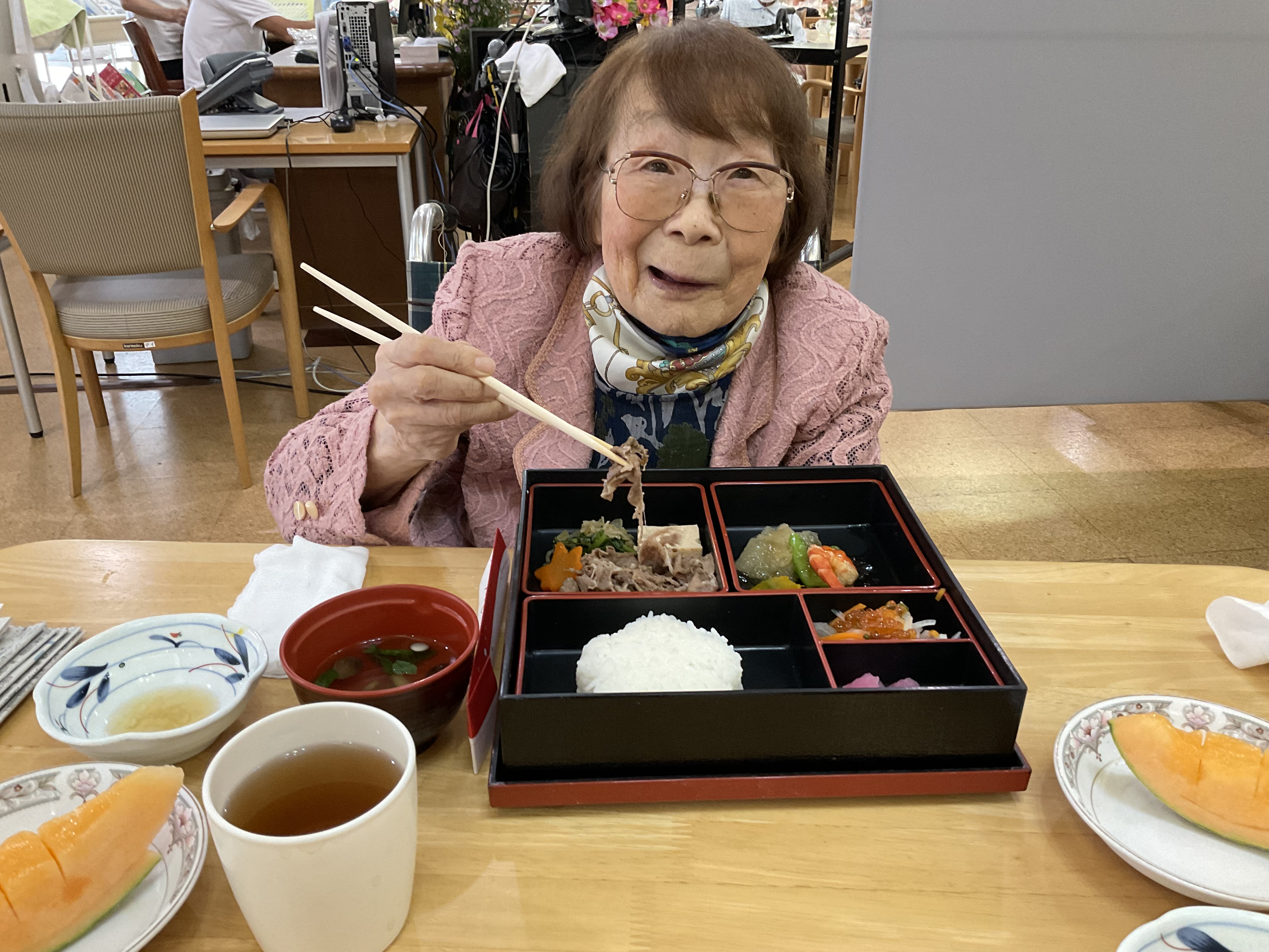 いつもにも増して豪華な昼食とおやつ♪ 昼食では「牛肉がたくさん!」など、楽しんでおられる声が聞こえました。