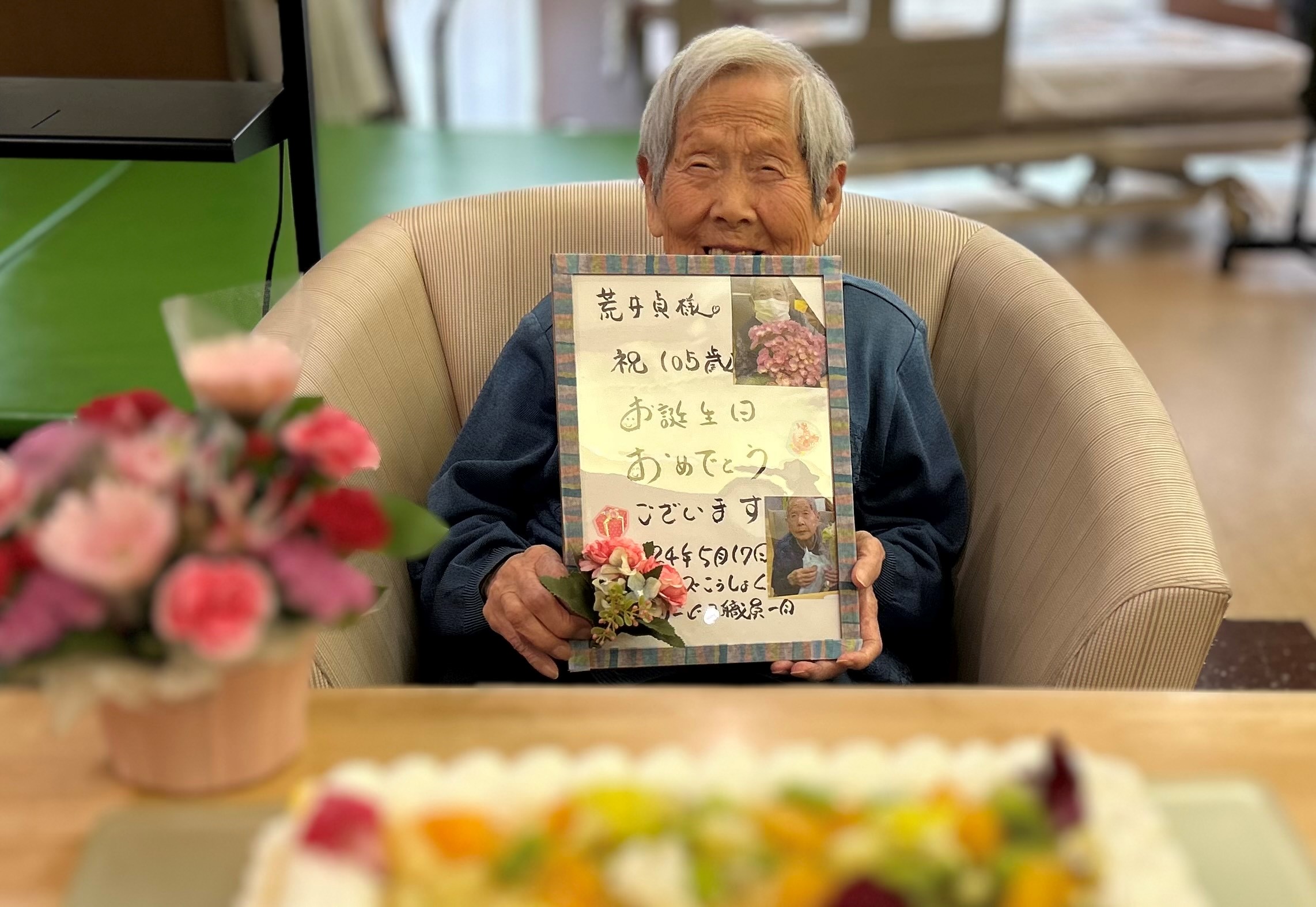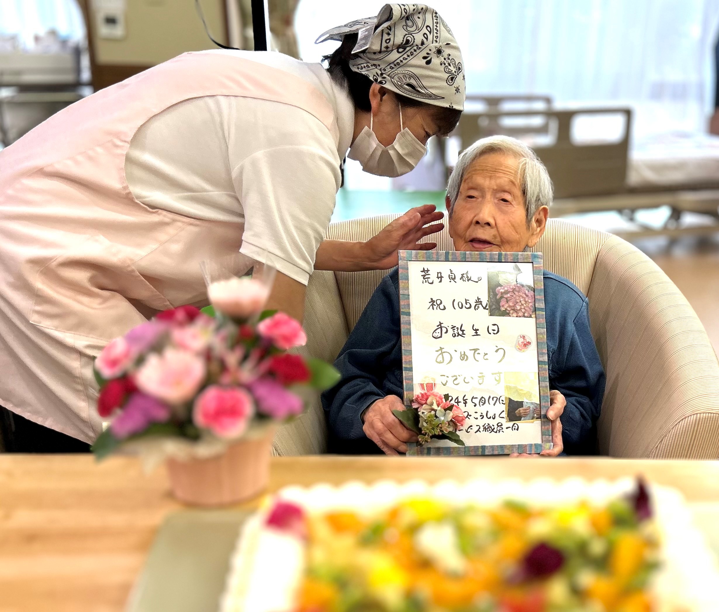 5月17日に105歳のお誕生日を迎えられたご利用者様のお祝いをしました