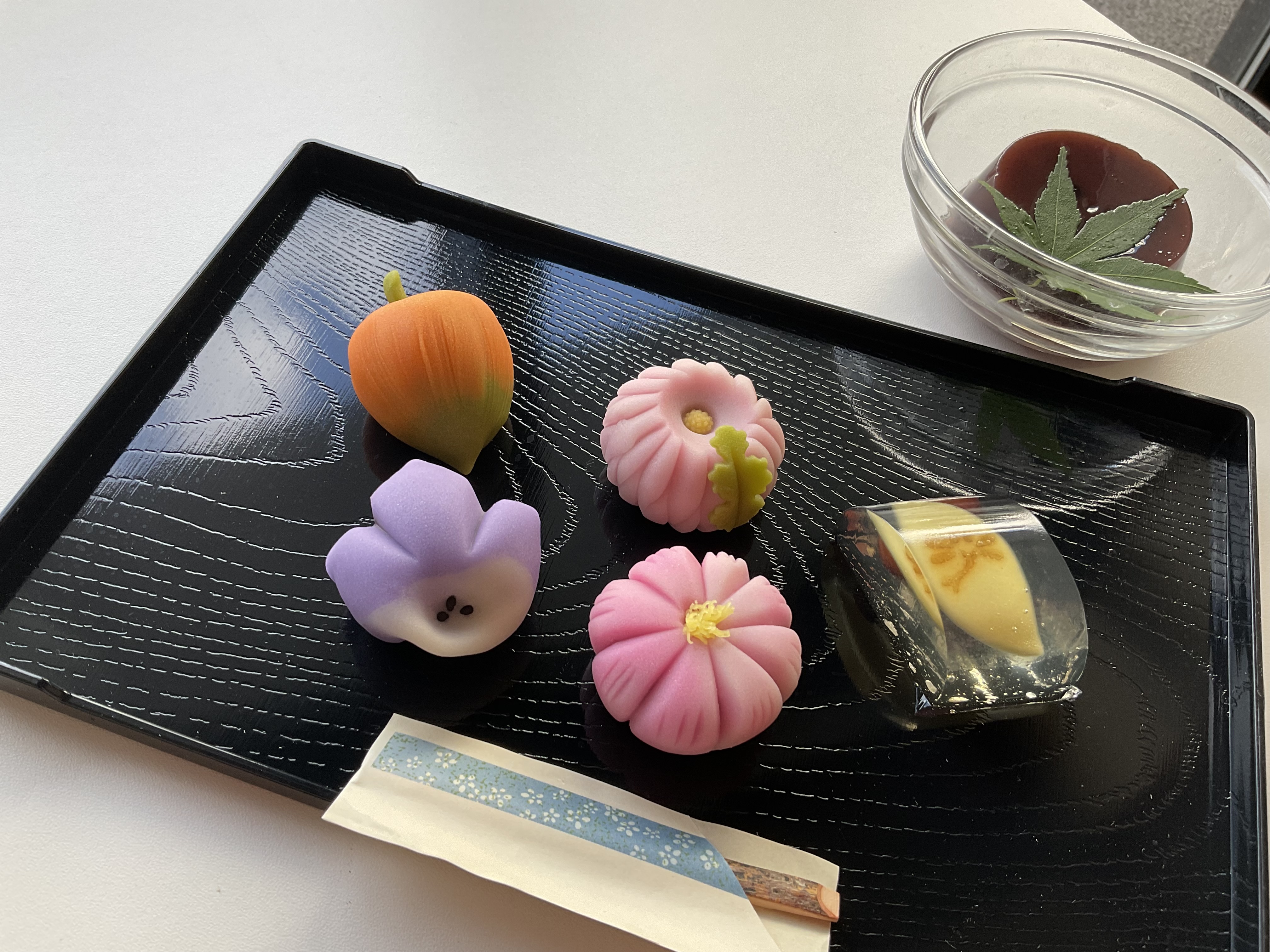 午後のお茶の時間には「御菓子司 青柳」の上生菓子をご用意しました。