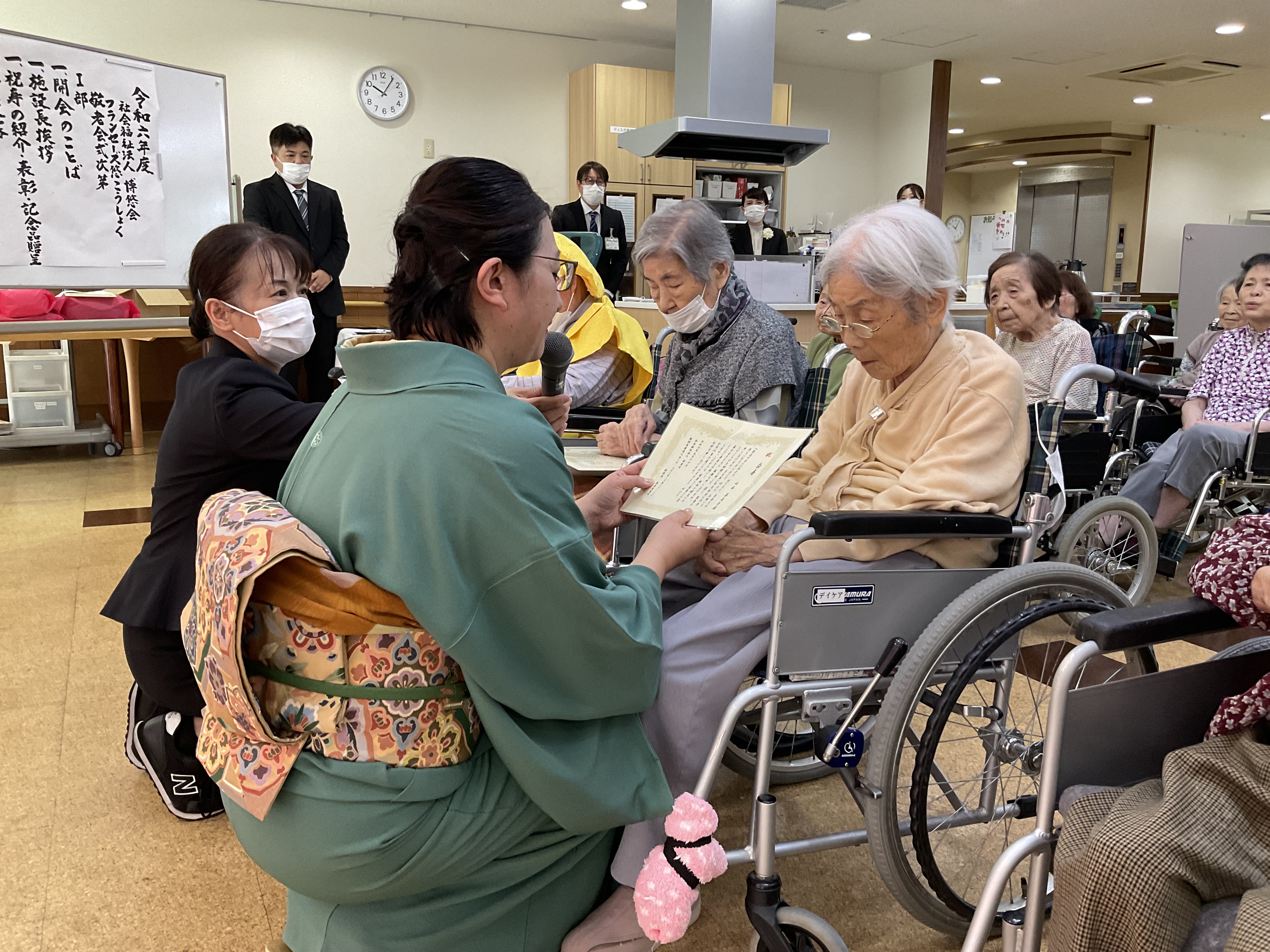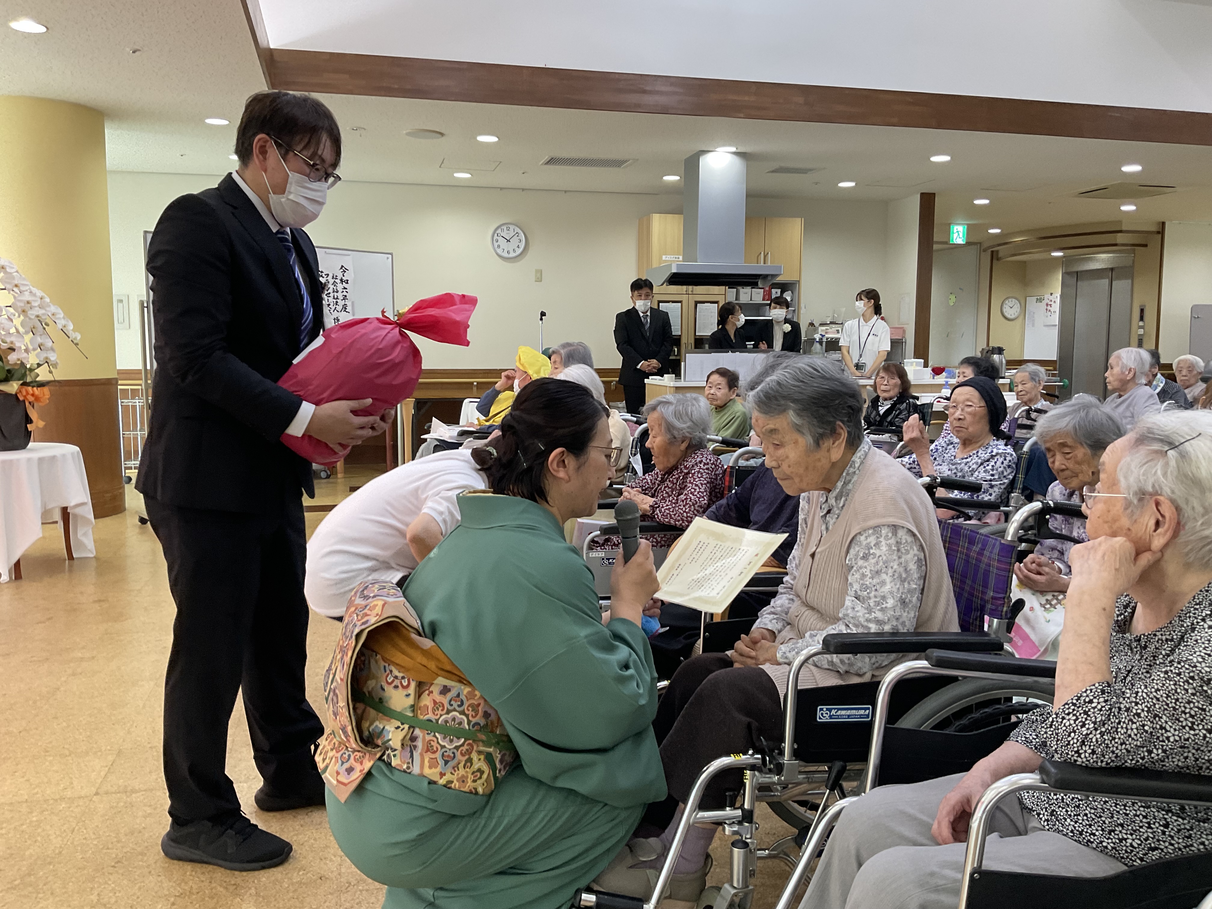 奥原施設長がご利用者様に感謝の言葉をお伝えしました。