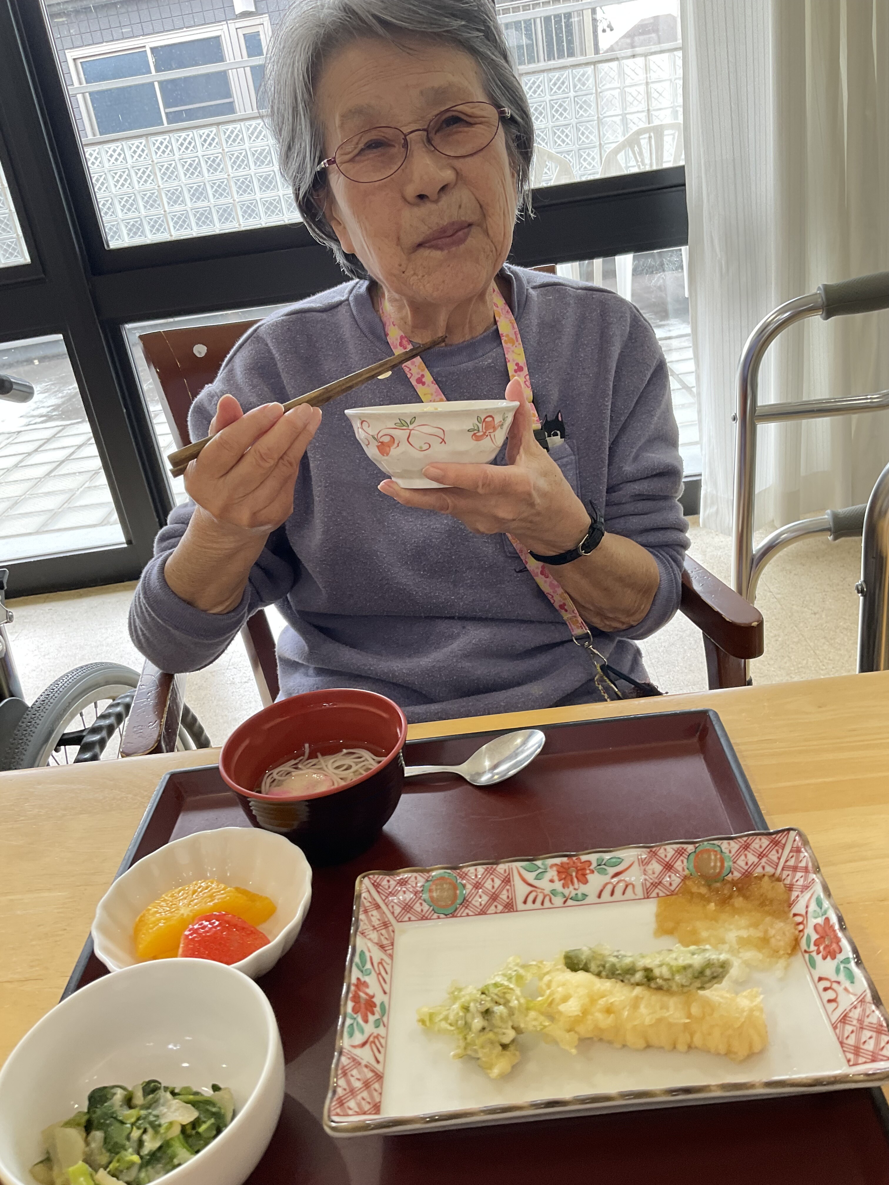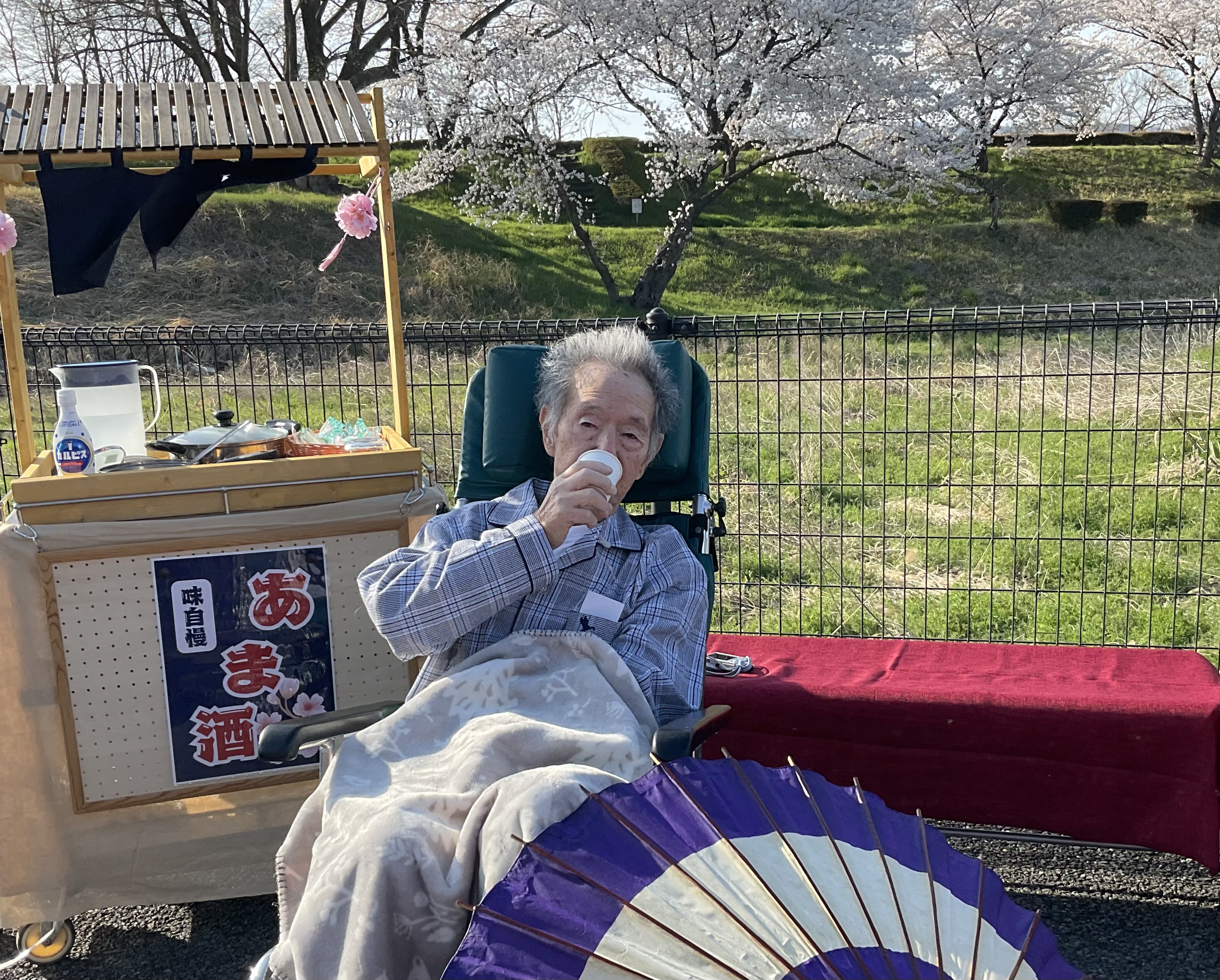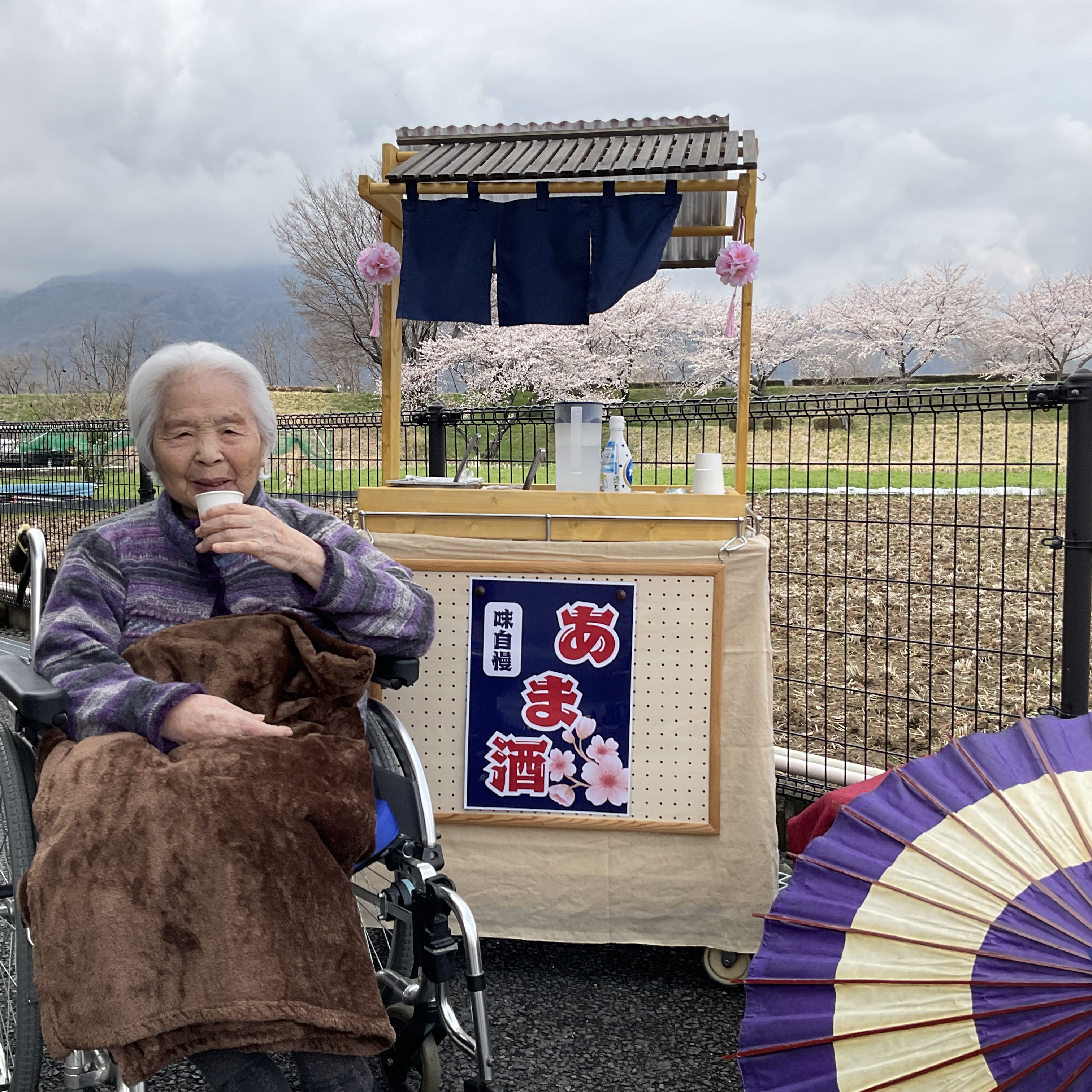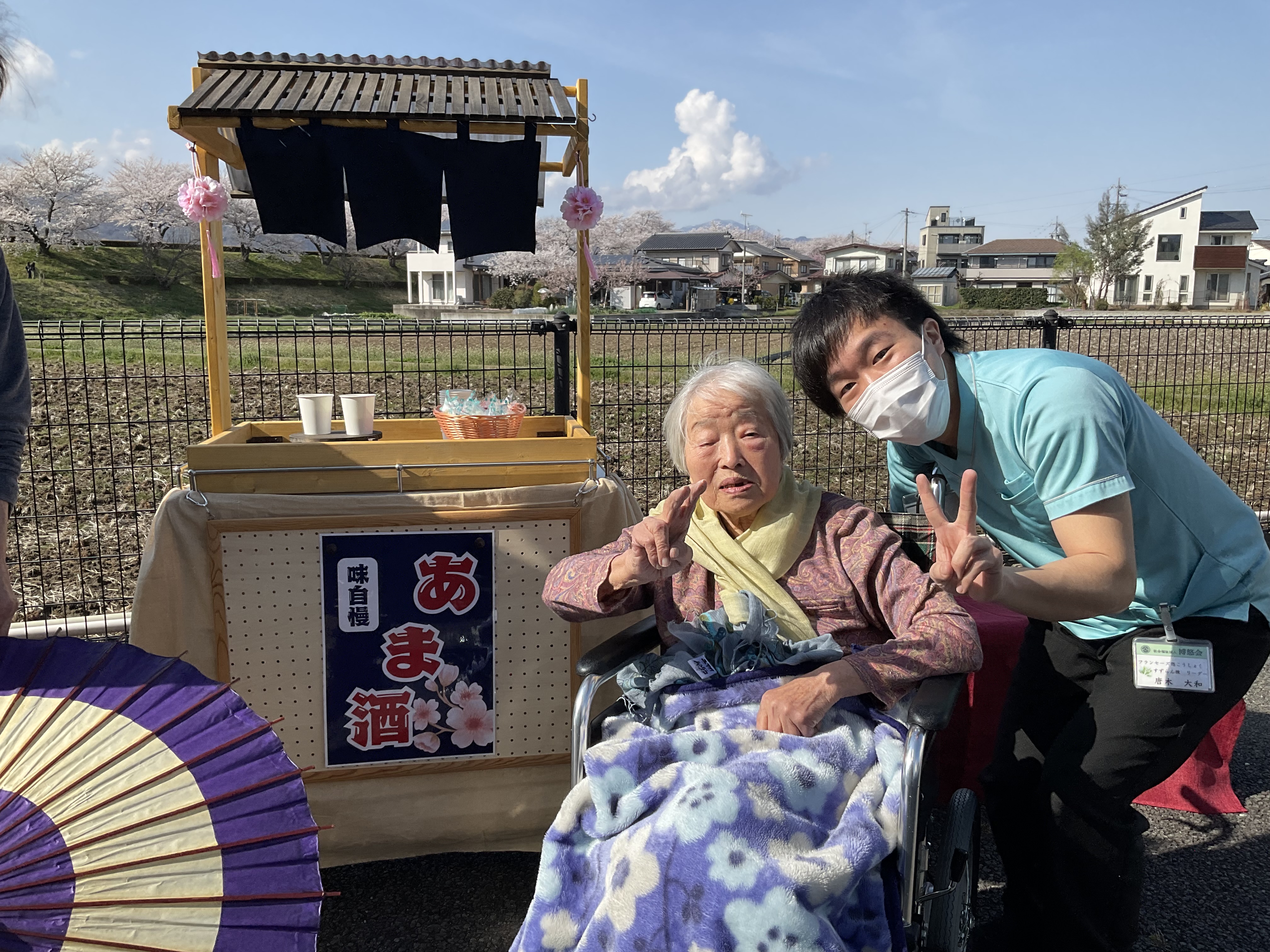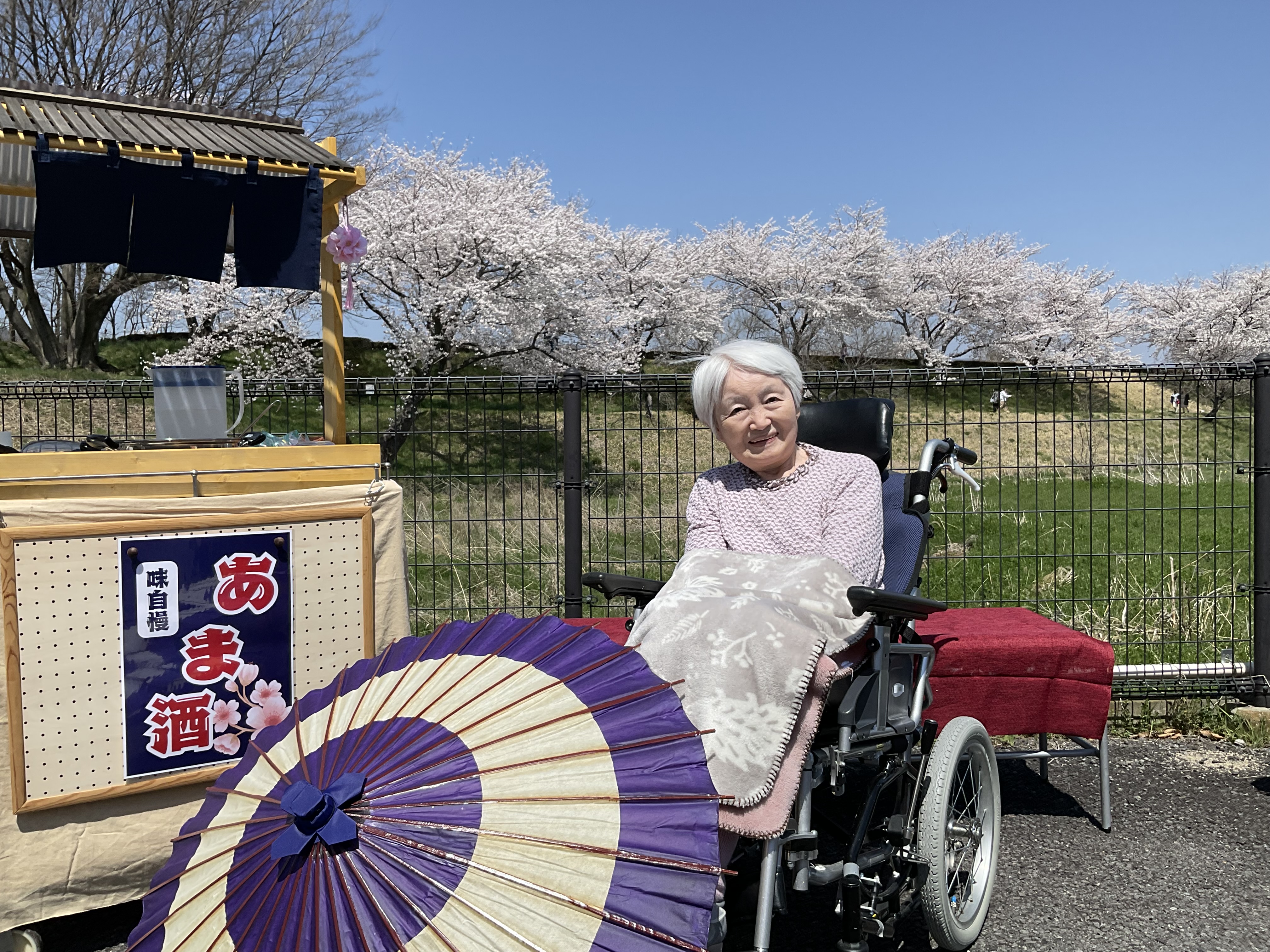 毎年この時期を楽しみされているご利用者様も多く、職員と一緒に外にお花見に行きました。