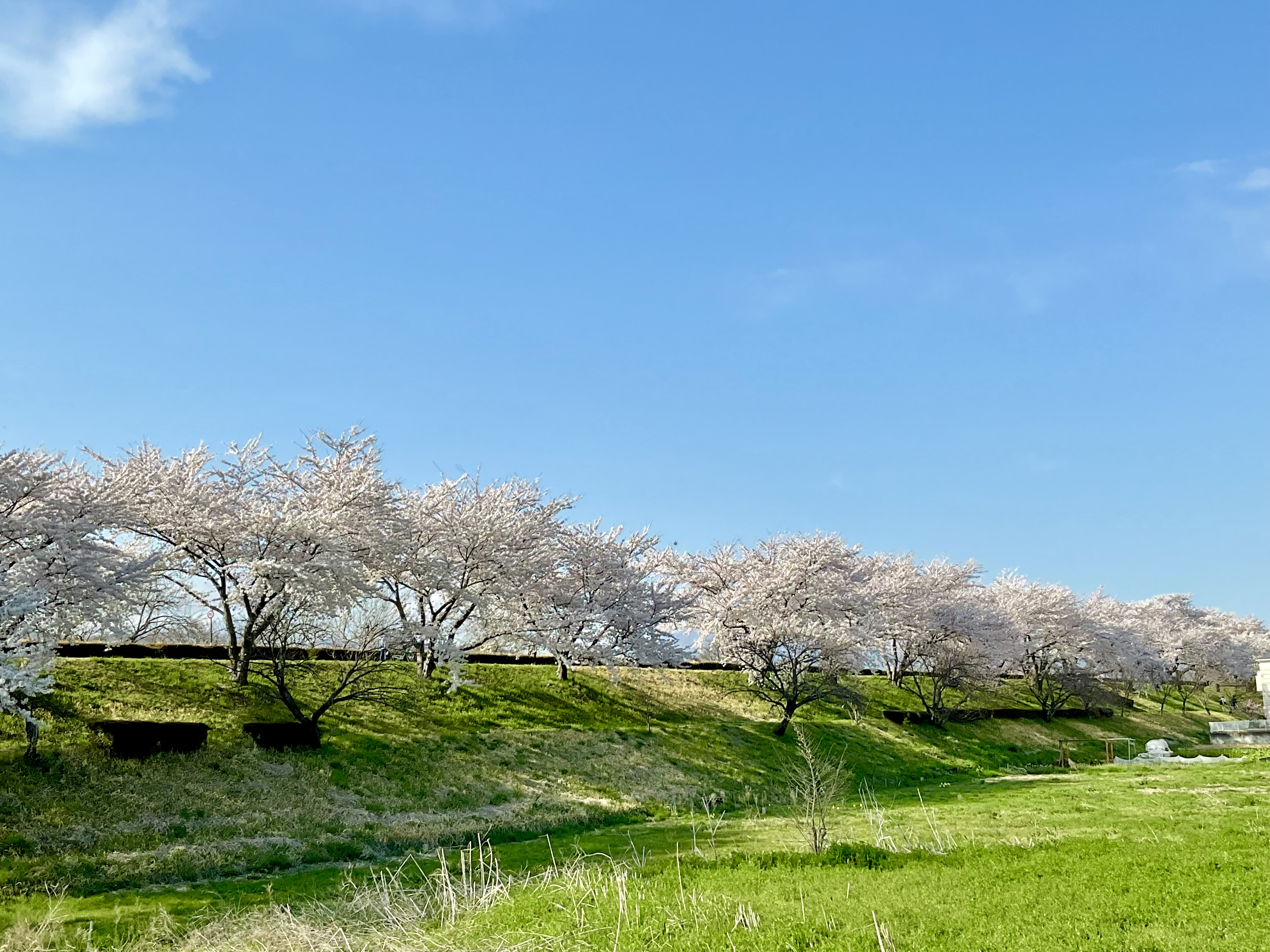 今年も、施設の傍の土手の桜の花が見頃になりました